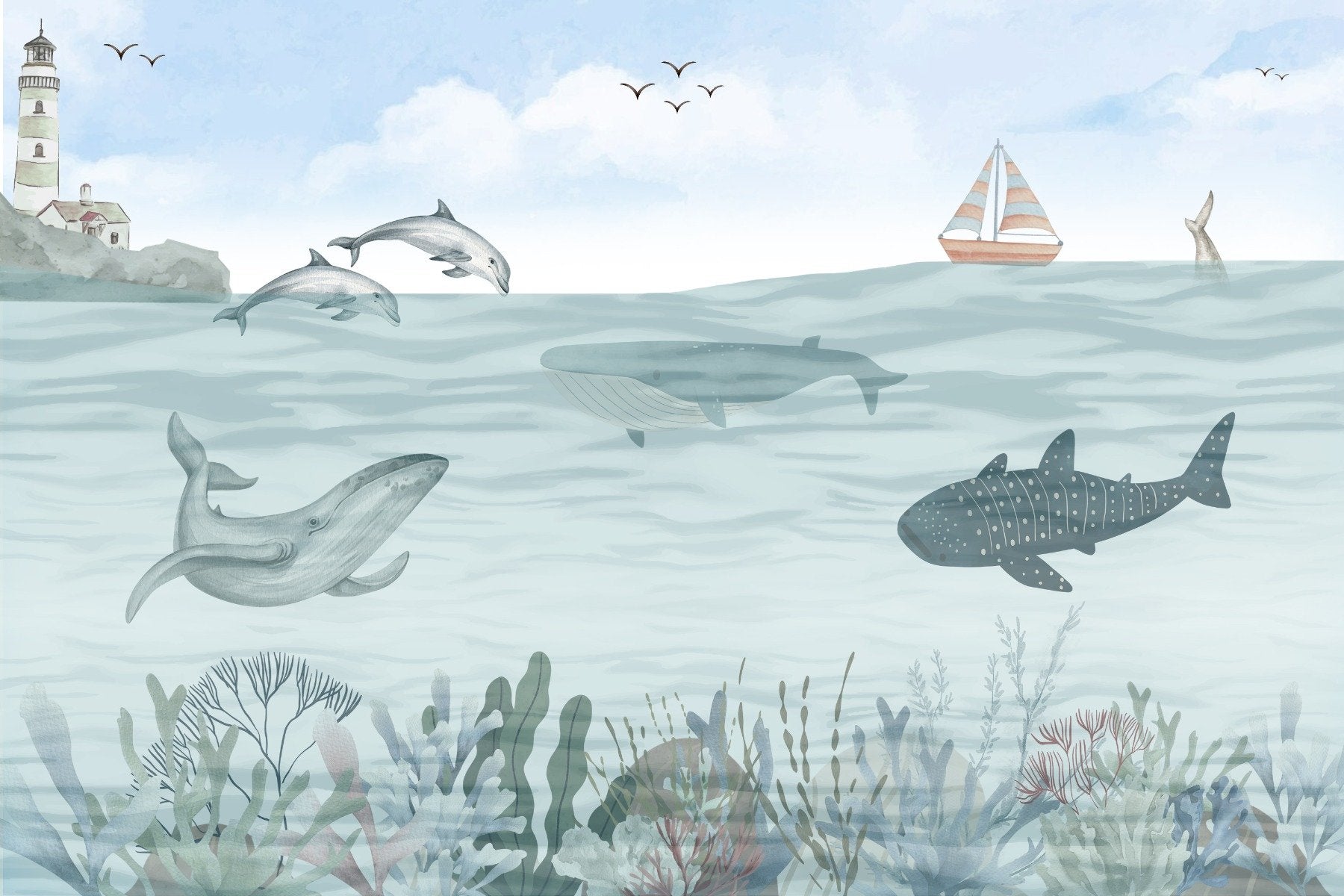 Perfect for an oceanside getaway or a child's playroom, the Seaside Orca Whale Wallpaper is a beautiful design that will help you bring a little peace and serenity into your cramped cityspace. Be inspired by the magical and energetic power of these divine beings in your everyday environment.