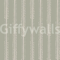 This wallpaper design features a calming and sophisticated pattern of vertical stripes in sage green and a soft off-white. The off-white stripes are adorned with a delicate, hand-drawn leaf motif, creating a subtle yet visually engaging texture. The color palette evokes a sense of tranquility and understated elegance, making it perfect for creating a serene atmosphere in any room. The seamless repeat pattern ensures a cohesive and harmonious look across walls, ideal for living rooms, bedrooms, or hallways. The minimalist design allows for versatility, complementing both modern and classic interior styles.