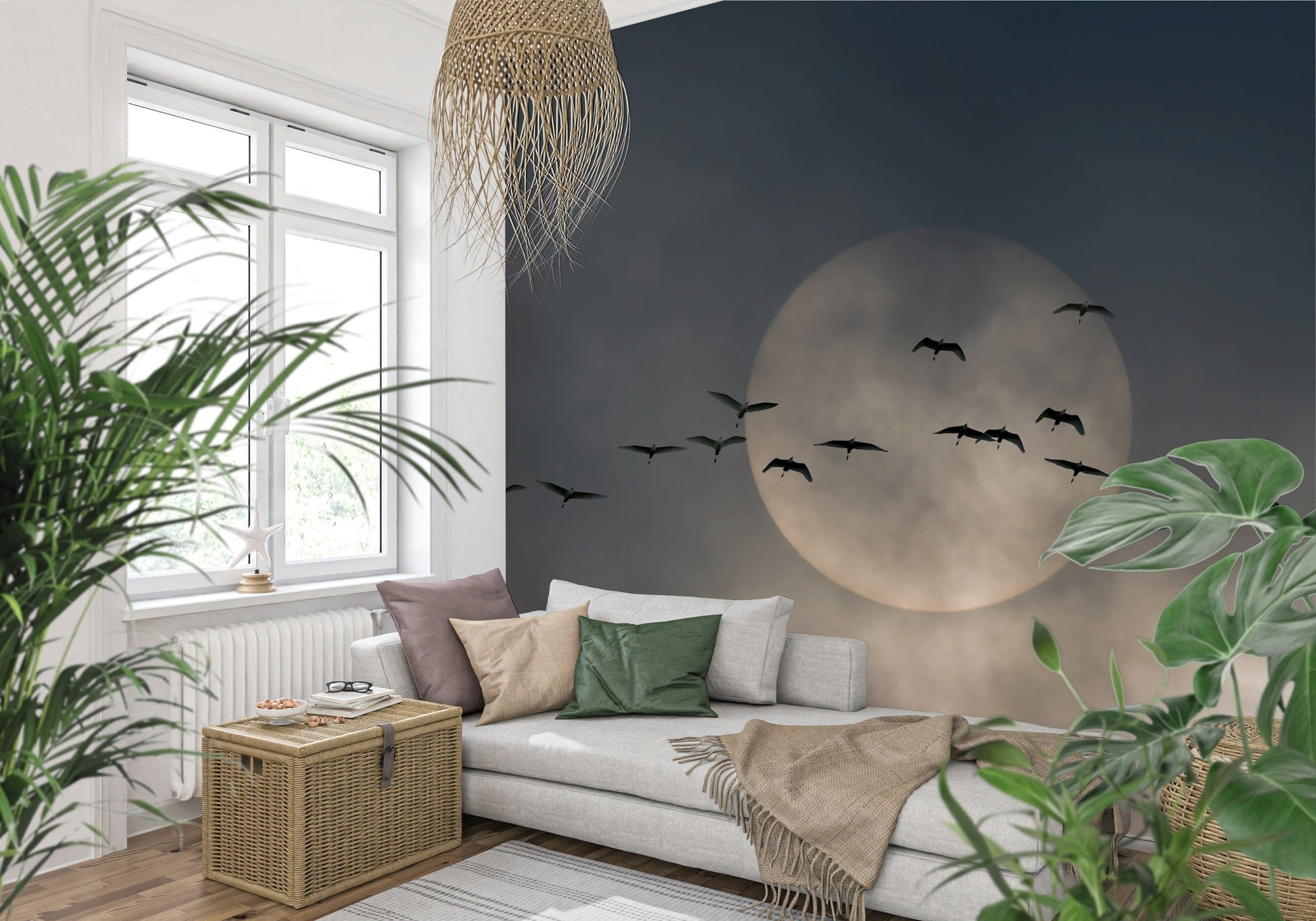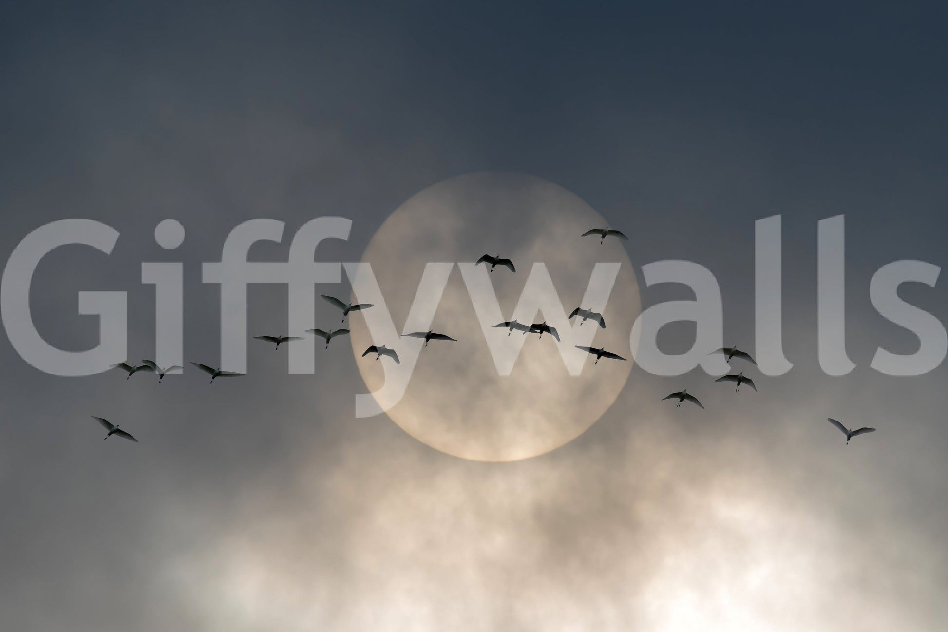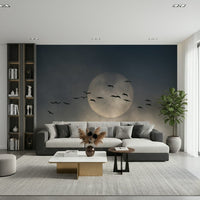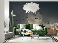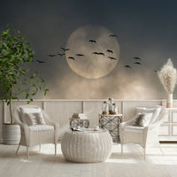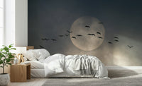 Invite a touch of peaceful beauty into your home with this stunning wallpaper for walls. Silhouetted birds take flight against a gentle, muted sky, creating a scene of effortless grace. The soft, monochromatic palette works well in any room, especially bedrooms or living rooms. Transform your interiors and embrace a soothing vista that complements modern and minimalist design with its quiet charm.