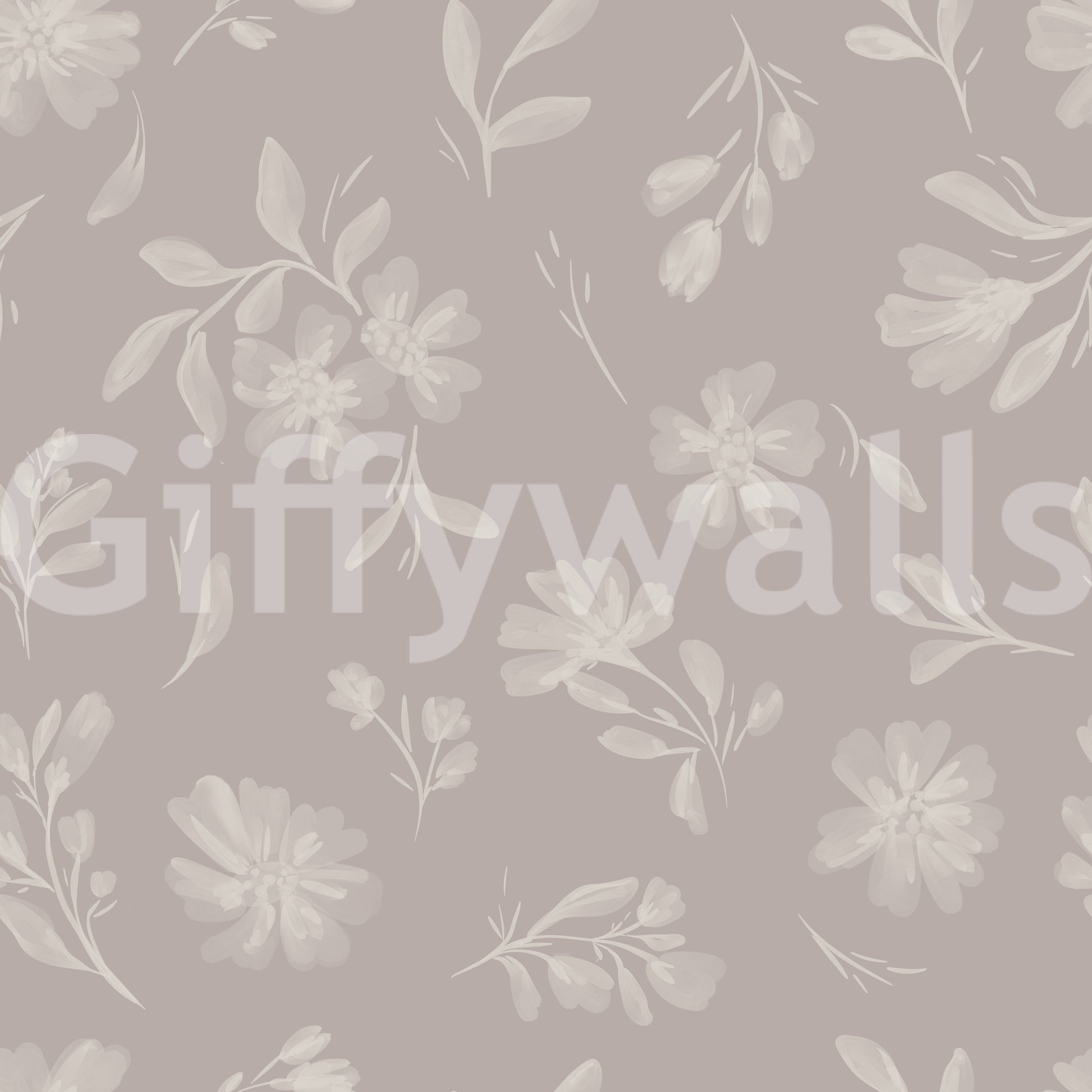 Create a soothing ambiance with this understated floral pattern. This design employs gentle brushstrokes, offering a soft and inviting charm to your space. The neutral taupe and off-white color scheme provide a delicate, refined ambiance suited for any room. This wallpaper for walls serves as a backdrop for bedrooms, living rooms, or studies, imparting a relaxed feel. The design complements both contemporary and classic interiors, blending seamlessly while adding depth and character to your home.
