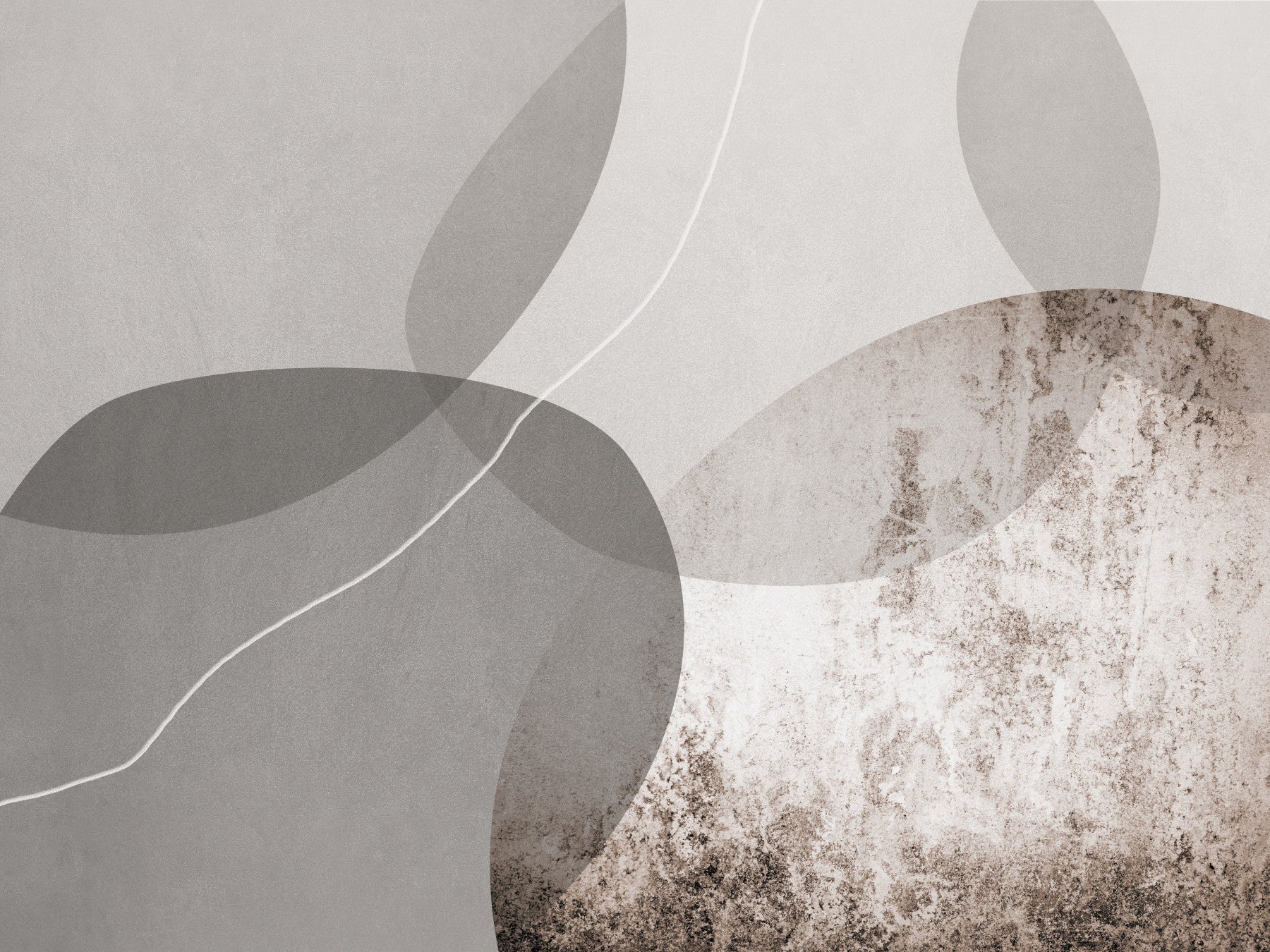 Elevate interior spaces with this modern design. Soft tones of gray and beige set a peaceful tone. Overlapping circles and a single white line compose the pattern. This wallpaper for walls enhances spaces with its subtle style. Install it in living rooms, bedrooms, or home offices. Its minimalist approach integrates well with varied decor styles. It is a perfect fusion of simplicity and style.