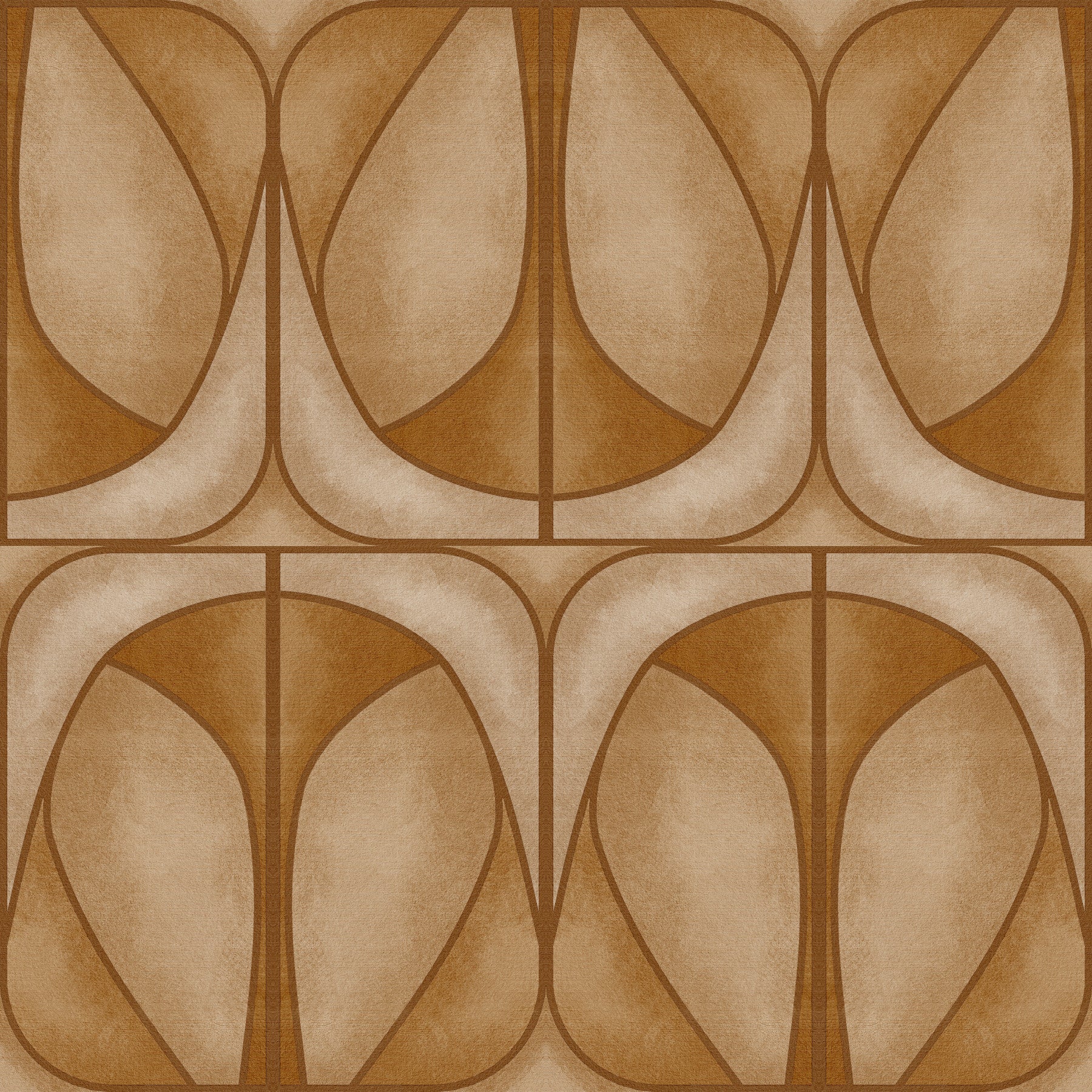 Indulge in the understated elegance of "Softy Dèco Geometries - Warm Caramel," a wallpaper that blends the iconic shapes of Art Deco with a modern, comforting warmth. This design features subtly rounded geometric forms, reminiscent of stylized florals or abstract motifs, arranged in a harmonious repeating pattern. The rich, warm caramel color palette creates a welcoming and sophisticated atmosphere, perfect for adding a touch of refined luxury to any space. The textures offer a tactile sense of depth, inviting you to immerse yourself in its calming embrace. "Softy Dèco Geometries - Warm Caramel" offers a soothing visual experience that balances structure and softness, making it an ideal choice for bedrooms, living rooms, or any area where a serene and stylish backdrop is desired. This wallpaper offers a blend of timeless appeal and contemporary sensibilities, elevating the style of your home.