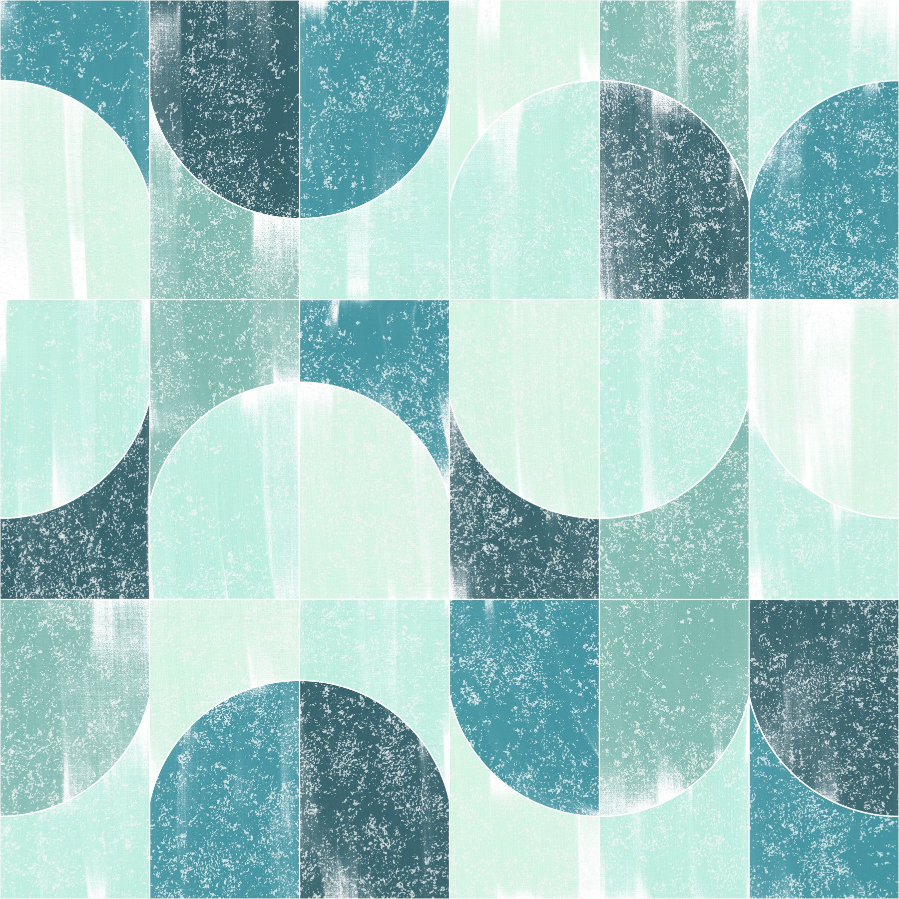 Dive into tranquility with the Sponge Painting Geo Tiles Watery Vibes wallpaper. This design evokes the calming essence of the ocean through a contemporary geometric lens. The artwork showcases a tessellated pattern of semi-circles and squares, rendered in a spectrum of serene blues and greens, from deep teal to pale aquamarine. The sponge painting texture adds a tactile, organic feel, reminiscent of sea-worn stones and coral reefs. Subtle brushstrokes enhance the watery vibe, creating a sense of movement and depth. Perfect for creating a relaxed and stylish ambiance in any room, this wallpaper adds a touch of modern sophistication with a soothing, natural touch. Let the calming colors and unique texture transform your space into a serene aquatic sanctuary.
