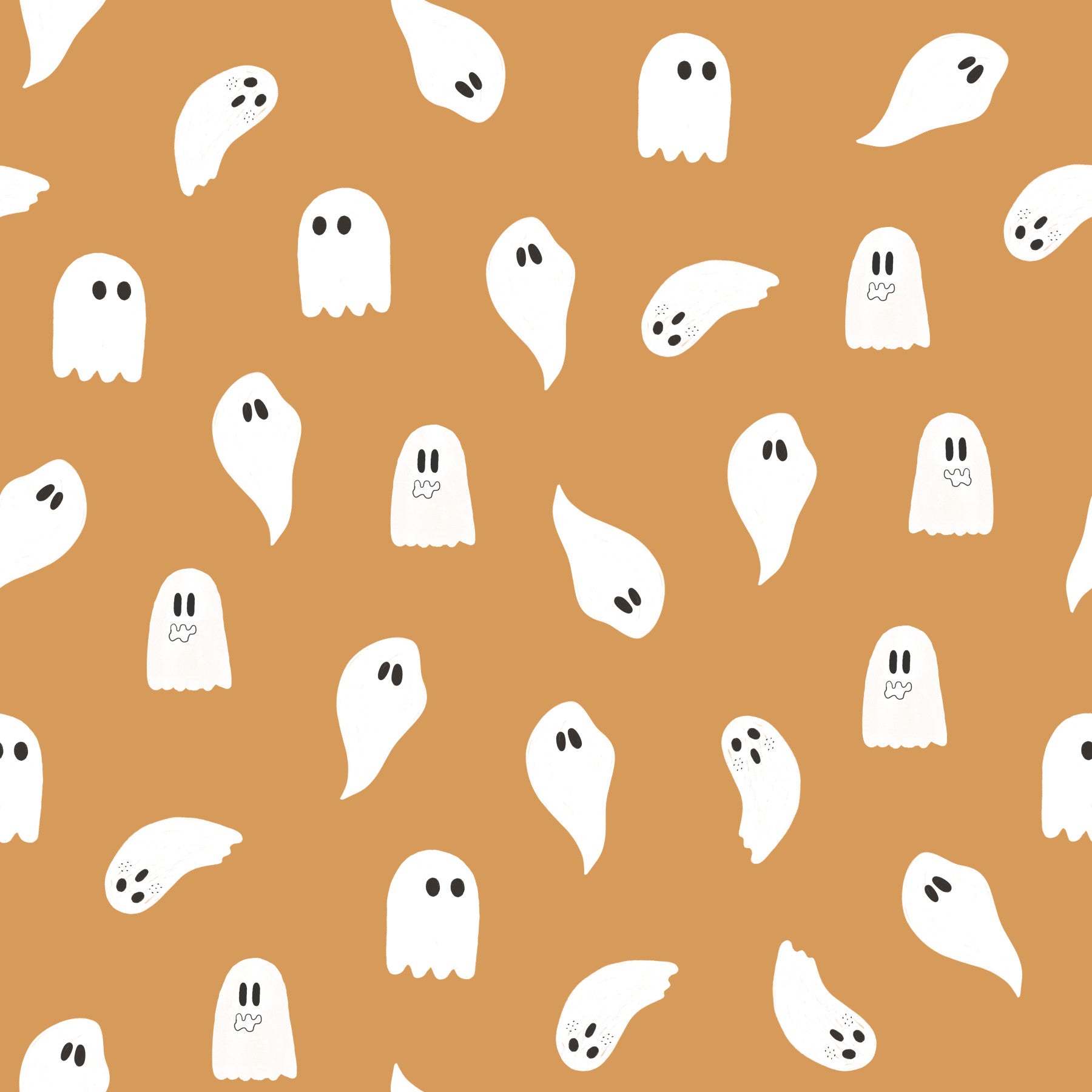 Embrace the playful side of spooky season with this charming ghost pattern. White hand-drawn ghosts dance across a tan background, creating a delightful and whimsical design. The simple yet effective style lends itself well to kids' rooms, hallways or even a fun bathroom. This playful motif will add a lighthearted touch to any space. Install this wallpaper for walls to give any room a fun personality and elevate the interior with spooky elegance. It fits many décor styles and promises to bring a smile to your face.
