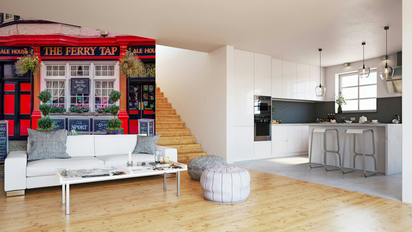 The Ferry Tap Ale House featured in a cozy cafe wall mural