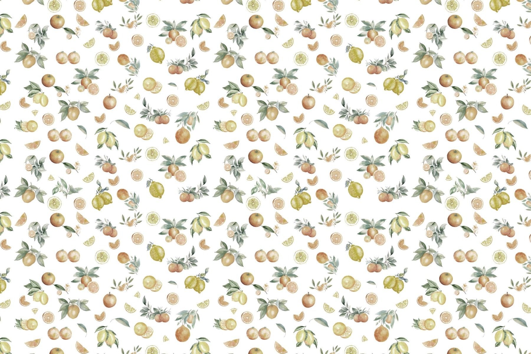 The summer citrus melody wallpaper mural is a vibrant wallpaper that embodies the zest of summer with its rich array of citrus fruits. A lively addition to any room, this fruit pattern wallpaper features beautifully illustrated oranges, lemons, and limes intermingled with lush foliage. The design is a cornucopia of color that brings a joyful energy to your surroundings, making it a perfect choice for kitchens, dining areas, or any space that could use a splash of sun-kissed cheer. With its detailed artwork and bright palette, this mural is a conversation starter that combines artistic flair with the bounty of the orchard. Whether you're looking to invigorate a commercial space or add a touch of playfulness to your home, the Summer Citrus Medley Wallpaper Mural promises a fresh, citrus-infused perspective.