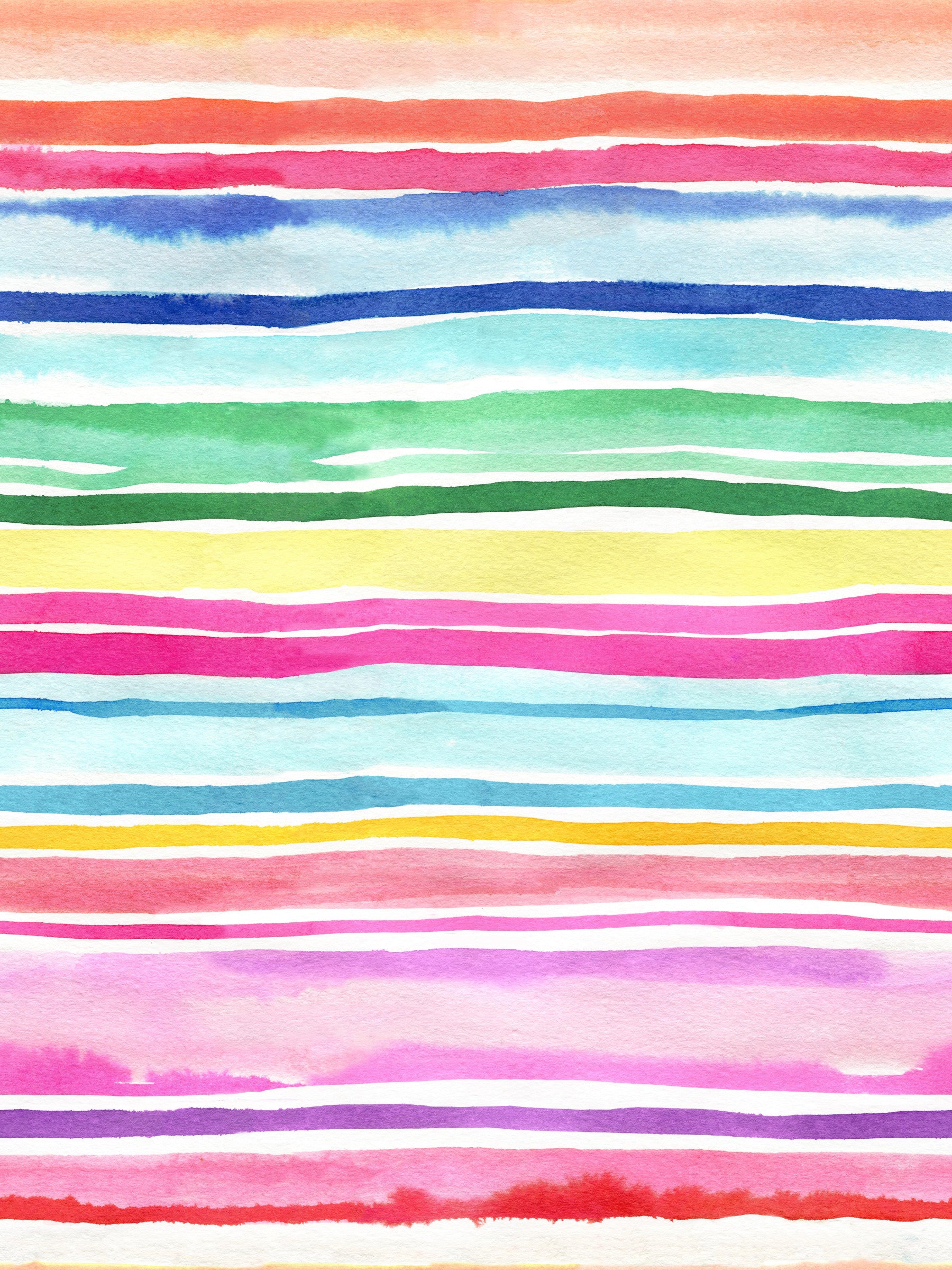 Embrace the vibrant energy of summer with this cheerful wallpaper! A cascade of hand-painted watercolor stripes in a rainbow of joyful hues creates a playful and optimistic mood. From soft pastels to bold, saturated colors, each stripe adds to the dynamic visual rhythm. This design is perfect for adding a touch of summer fun to any digital device, bringing a sense of carefree energy and happiness to your screen. The slightly imperfect, hand-painted look adds a unique and artistic touch, making it a truly unique and eye-catching wallpaper.