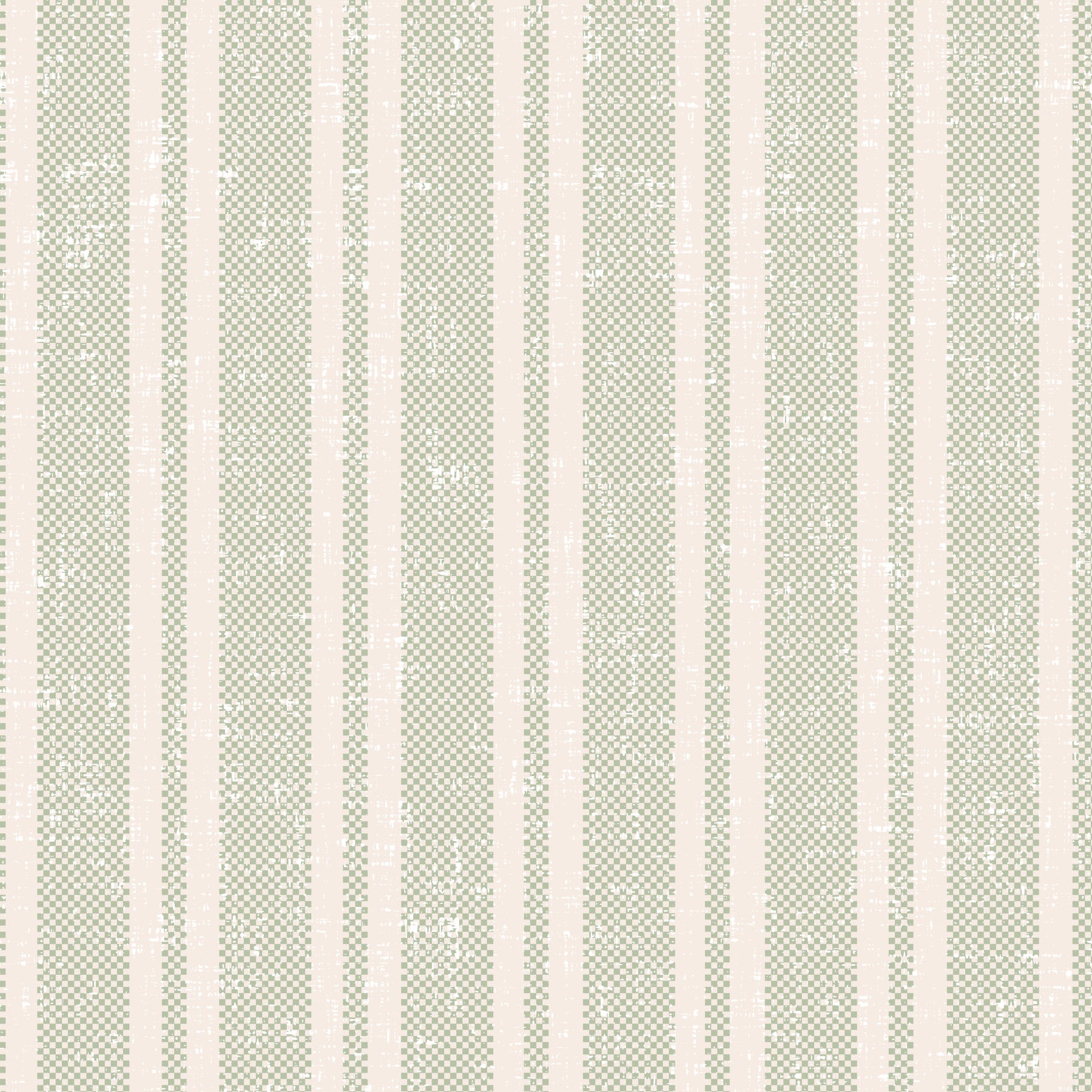 Relax and unwind with the 'Sunchair Stripe - Green' wallpaper. This design evokes a tranquil mood with its subtle sage green and creamy off-white stripes. A gentle, distressed texture adds a touch of vintage charm, giving the checkered pattern a faded, sun-bleached look. Perfect for creating a calming atmosphere in any digital space, this wallpaper blends seamlessly with various design styles, offering a peaceful and stylish backdrop for your desktop or mobile device. The soft color palette and understated pattern make it an ideal choice for those seeking a serene and sophisticated aesthetic.