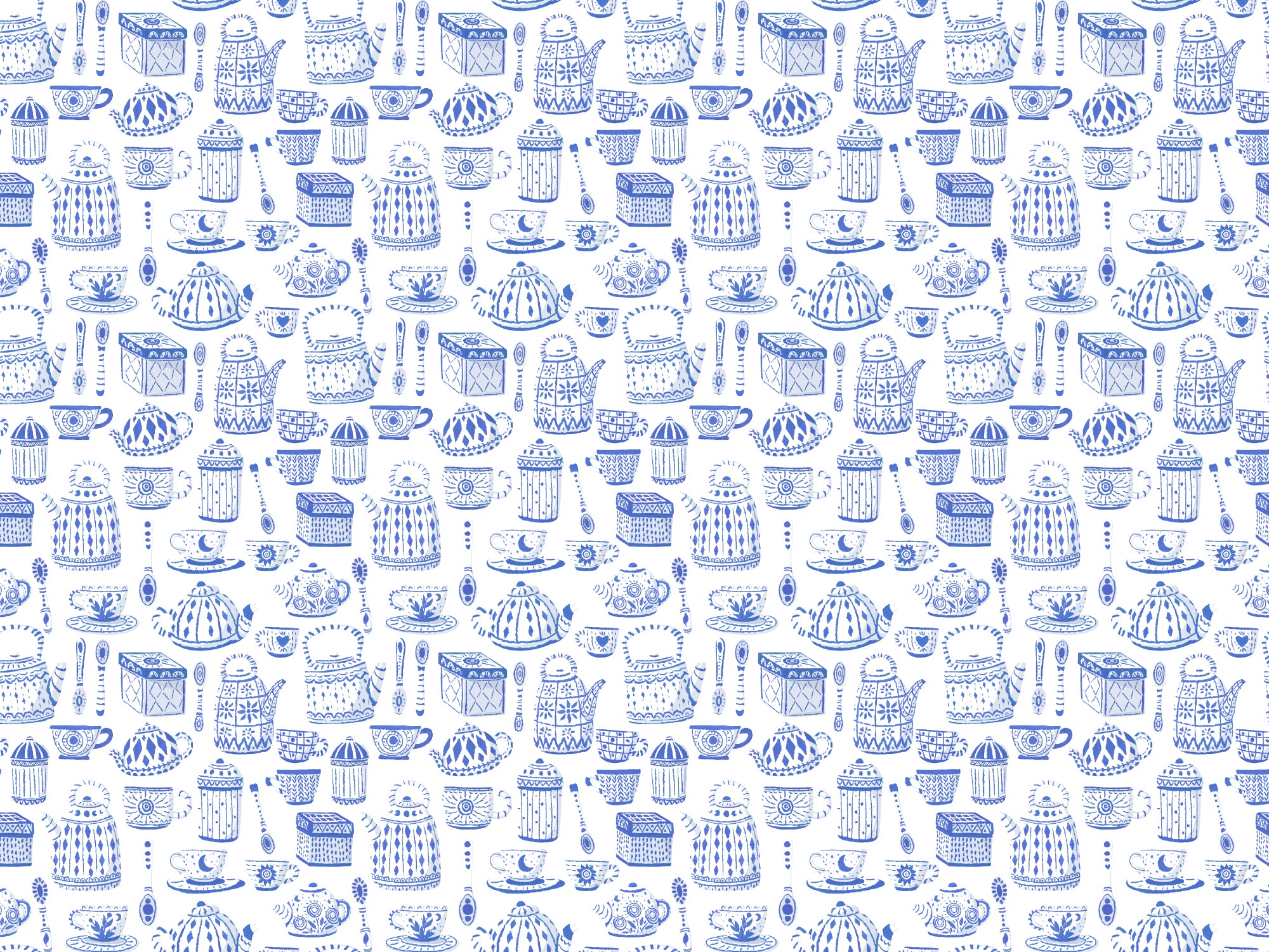 Classic blue tea set wallpaper perfect for vintage decor.