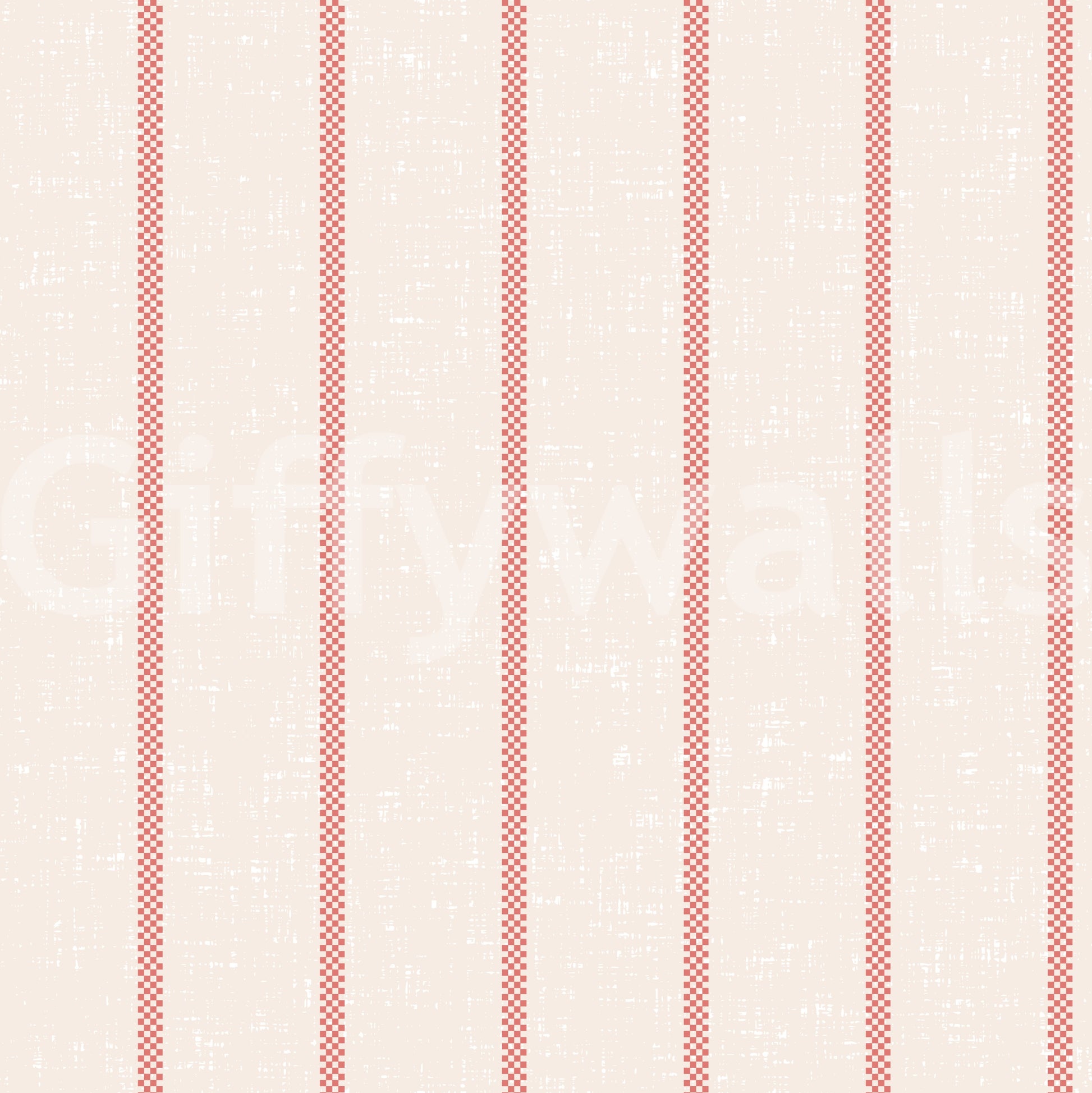 Embrace a touch of rustic charm with this 'Tea Towel Stripe - Red' wallpaper. The design features delicate, vertically-aligned stripes of a soft coral red checkerboard pattern, set against a subtly textured, off-white background. This understated yet stylish wallpaper evokes the cozy feeling of a vintage tea towel, bringing a sense of warmth and simple elegance to any space. The slightly distressed background adds depth and character, enhancing the overall homely and inviting atmosphere. Perfect for kitchens, bedrooms, or any room needing a touch of refined country style.