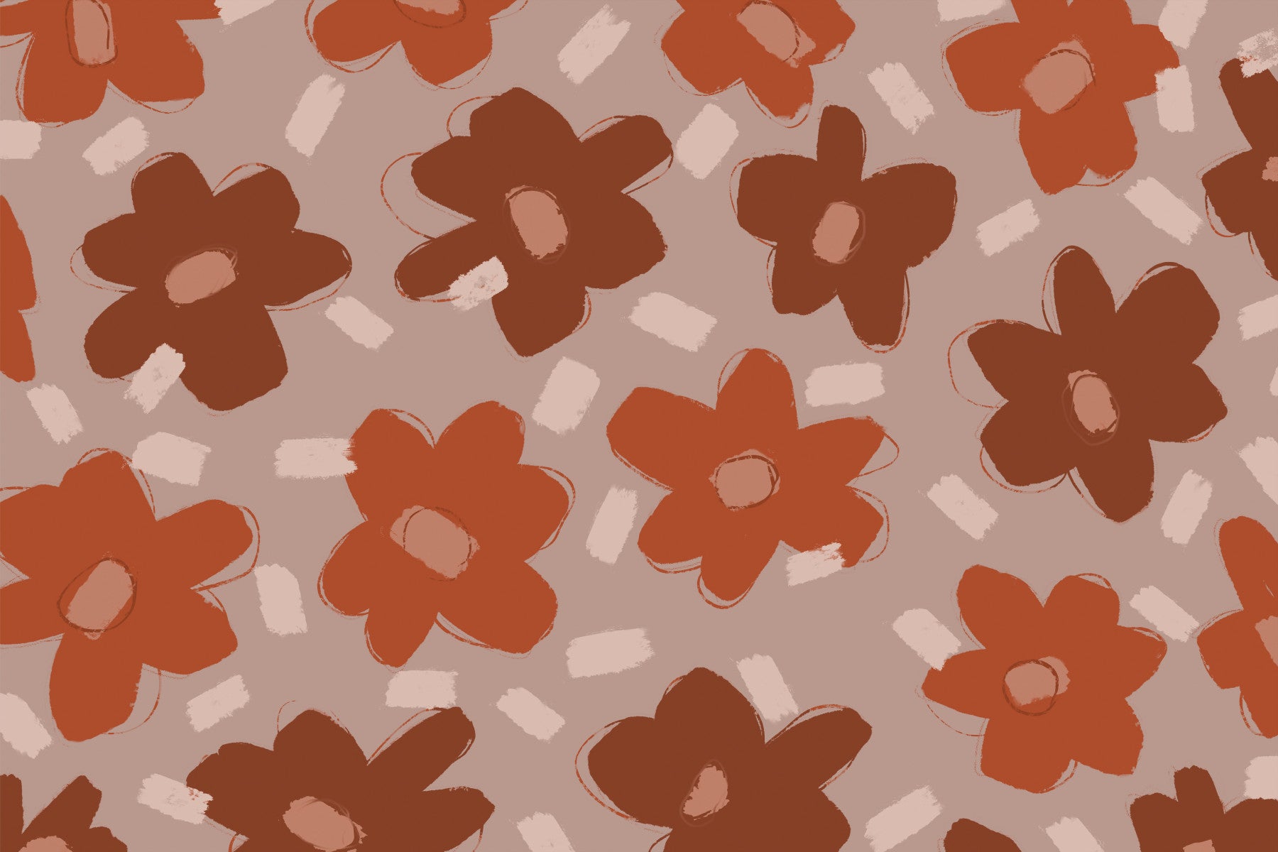 Introduce a vibrant yet soothing ambiance with this floral wallpaper. Large, stylized blooms in shades of rust and brick create a dynamic pattern against a neutral canvas. The simple brushstroke style offers a relaxed, hand-painted charm. This wallpaper for walls easily elevates any room. It is perfectly suited for a bedroom or living room to instill a sense of peace and organic style. Enhance your home with this touch of floral design.