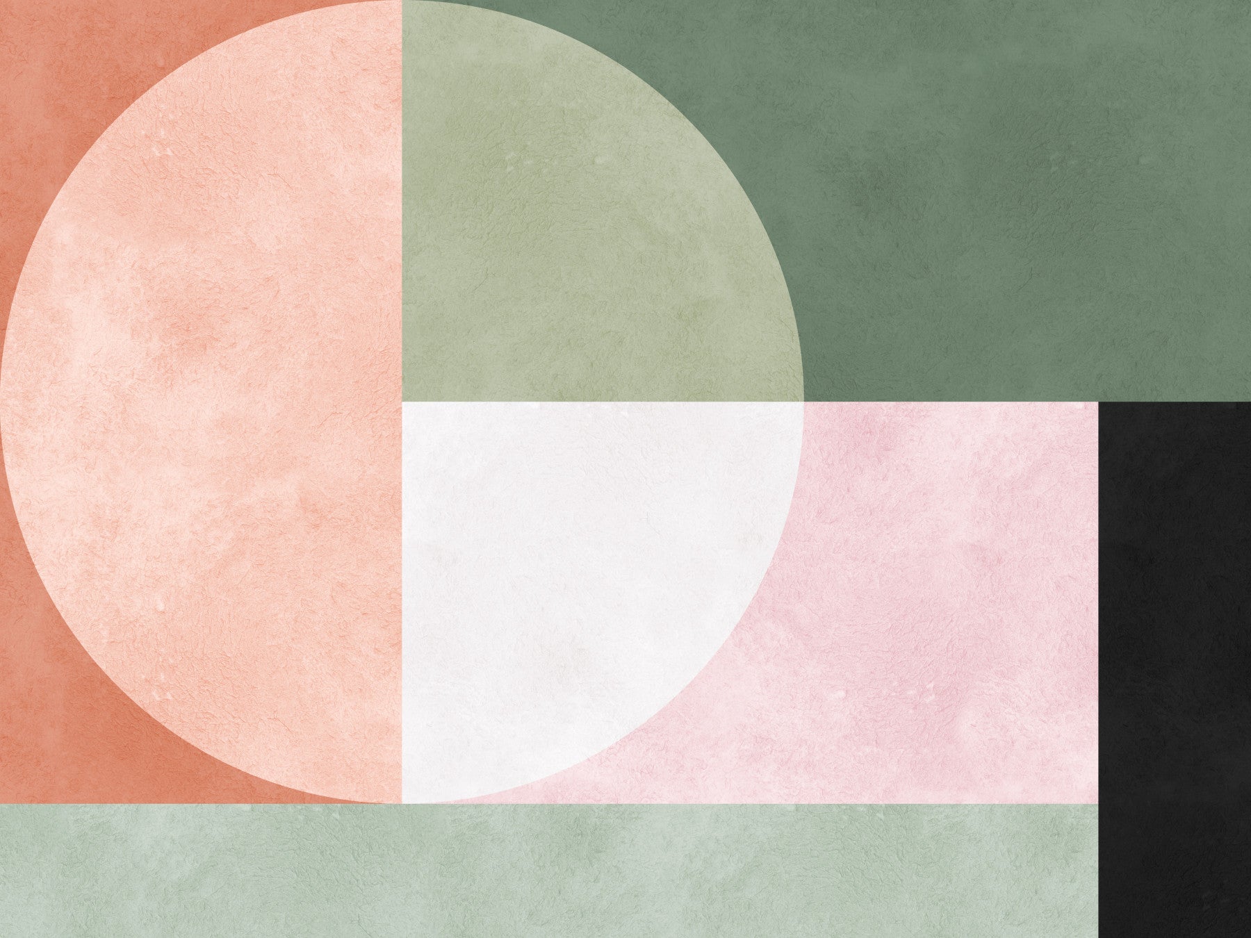 Experience the allure of abstract design with this artful wallpaper. The layout features geometric patterns in muted shades of salmon pink, sage green, blush pink, and crisp white accented by a touch of black. The textured effect offers a tactile feel, bringing warmth to your space. This wallpaper for walls integrates perfectly into modern and minimalist decors, improving the look of bedrooms, living rooms, and studies. Transform any interior into a gallery of graphic sophistication.