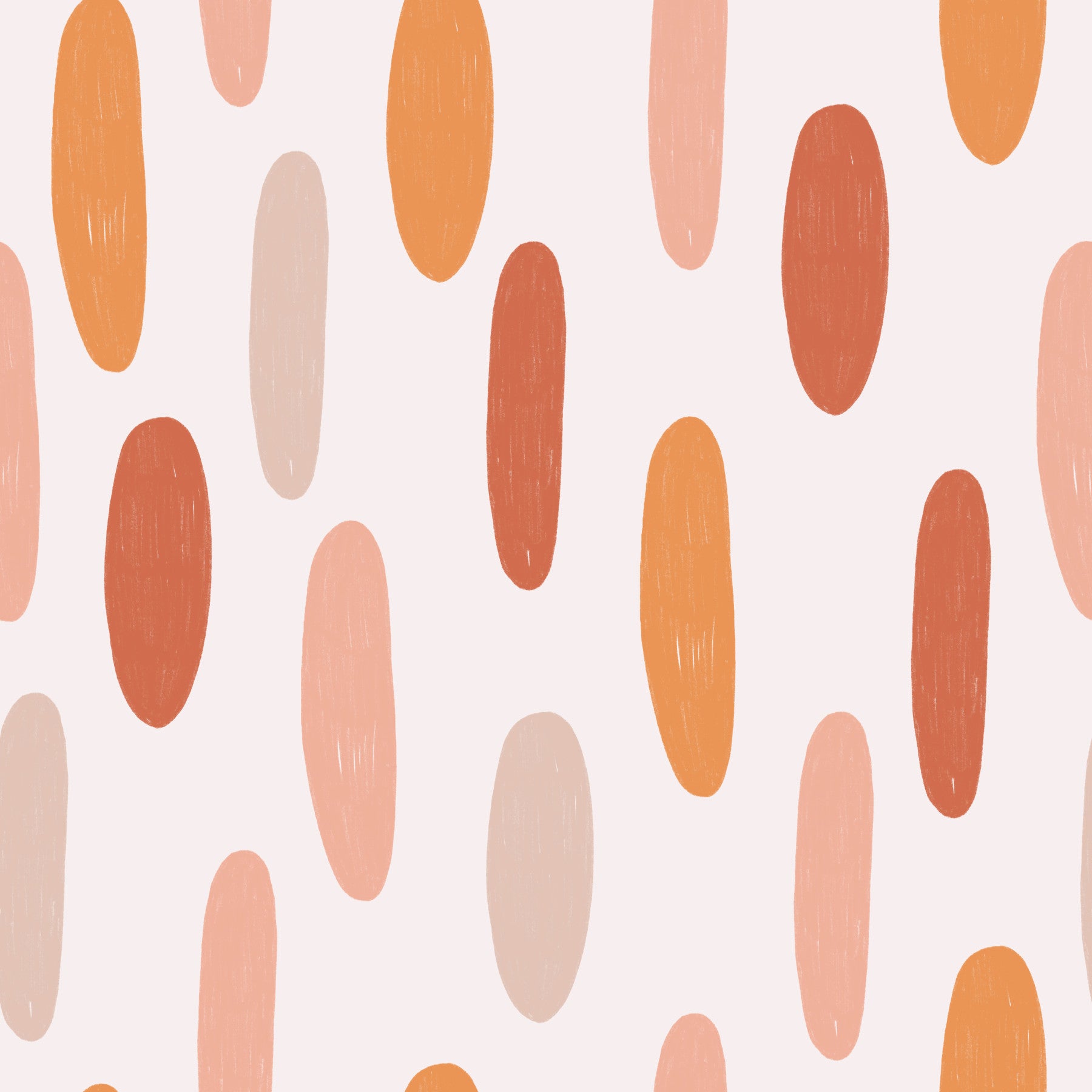 A repeating pattern of hand-painted terracotta ovals giving the wallpaper a soft, artisanal feel.