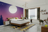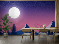 The Cold Mountains by Winter blends deep purples, snowy peaks, and a moonlit sky to craft a calm and moody scene. This mountains wallpaper captures the stillness of winter nights, with star-speckled skies and crisp outlines of pine trees. Whether you’re creating a relaxing bedroom retreat or a quiet reading nook, this piece adds a cool edge and visual depth. The layered tones and peaceful birds in flight bring movement without noise. Perfect for those who love the outdoors and want to bring that cool mountain vibe indoors. Make any room feel grounded and chill with this unique wall design.
