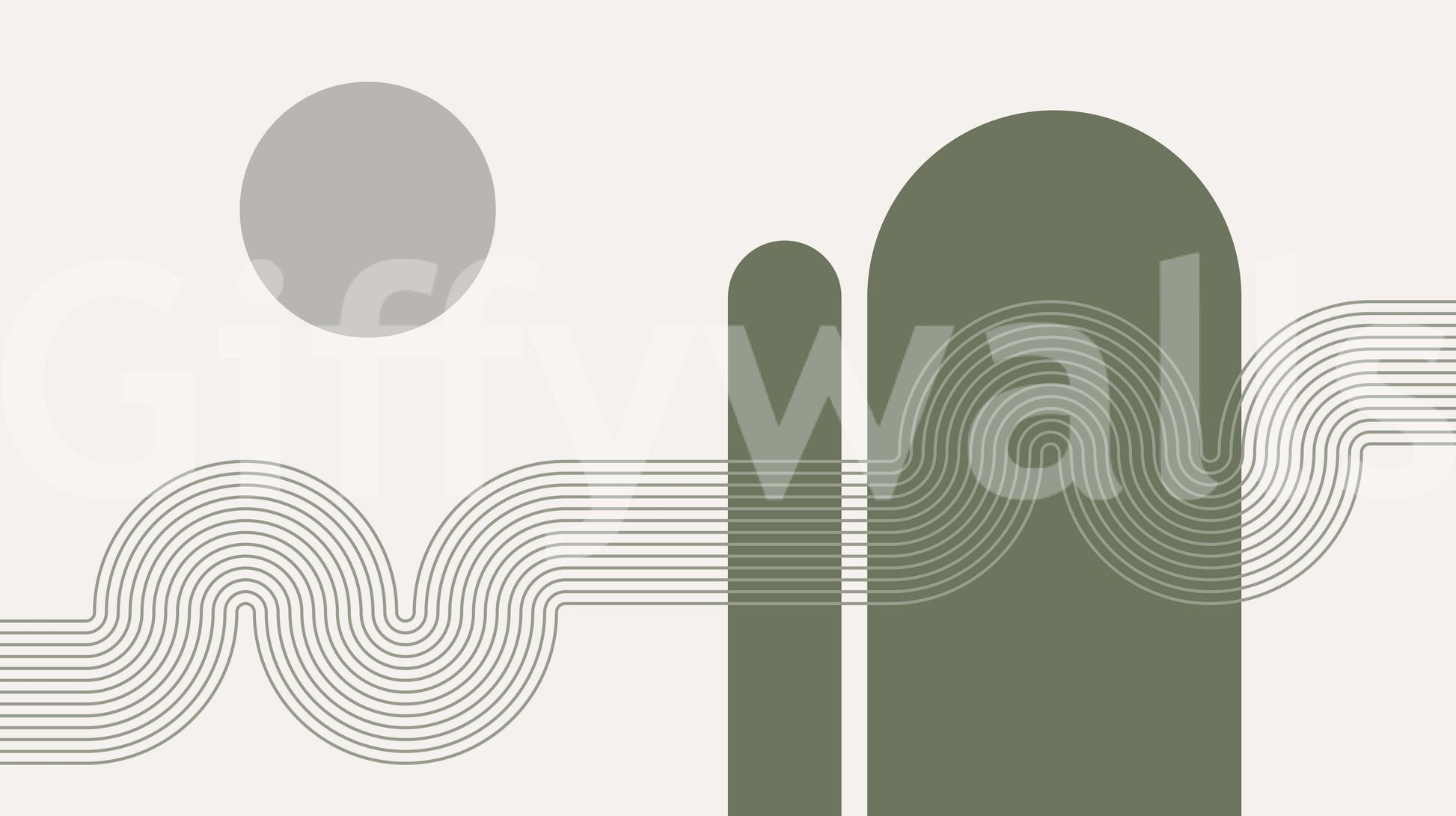 Curved line mural in earthy beige and soft gray