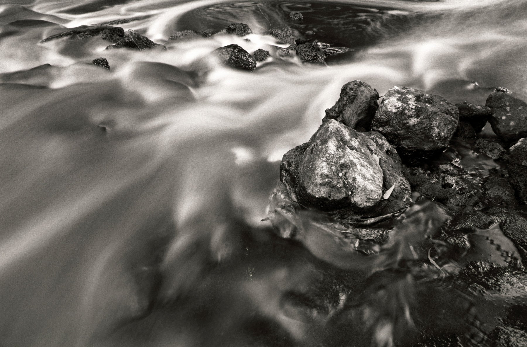 Immerse yourself in the serene beauty of The Stream a monochrome wallpaper that captures the fluidity and tranquility of nature. Witness the dynamic interplay between the unyielding strength of weathered rocks and the gentle, continuous movement of water as it carves its path. The long-exposure technique used to capture the shot turns water into silky smoke, creating a calming abstract pattern that gives a sense of movement and energy. Perfect for creating a peaceful and contemplative atmosphere on your digital device, this wallpaper invites you to pause and reflect on the ever-flowing nature of life. A sophisticated and elegant choice that brings the soothing essence of the natural world to your fingertips, blending the timeless appeal of monochrome photography with the raw, untamed beauty of a mountain stream. Let your mind drift along with "The Stream", and find peace in its rhythmic flow.