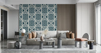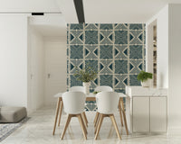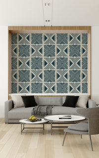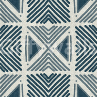 Embrace the raw beauty of heritage textiles with our 'Tribal Denim Motif' wallpaper. This design marries the rugged charm of denim with the timeless appeal of tribal patterns. Bold, geometric shapes in varying shades of indigo are rhythmically repeated across a textured, off-white backdrop, evoking a sense of both modern cool and ancient artistry. The hand-drawn quality of the lines lends an authentic, artisanal feel, as though carefully etched onto a well-worn piece of denim. Perfect for adding a touch of rustic sophistication to any space, this wallpaper offers a unique blend of comfort and style. Transform your walls into a statement of cultural appreciation with the 'Tribal Denim Motif' – a versatile design that complements both minimalist and eclectic interiors.