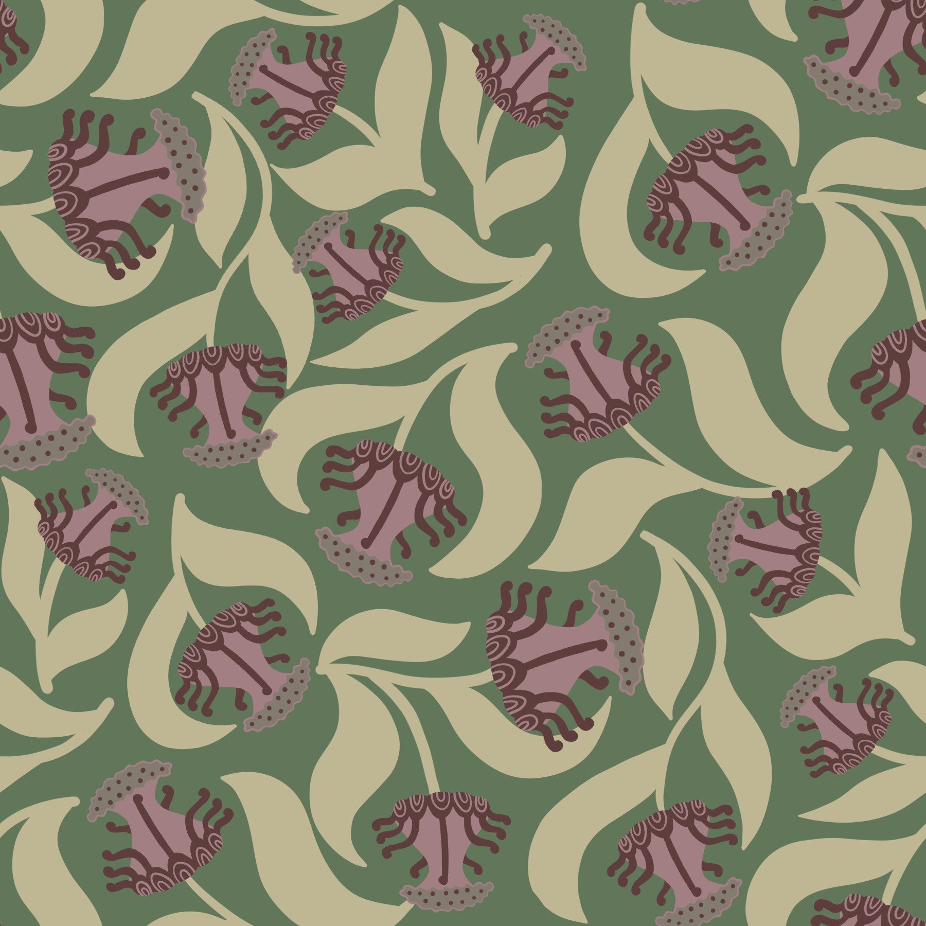 Step back in time with Velora - Vintage Blooms a wallpaper design that whispers of bygone eras and floral elegance. This captivating pattern features stylized, almost whimsical blooms in muted mauve and brown tones, resting amidst gracefully curving leaves in soft olive green. The color palette evokes a sense of nostalgia, while the unique floral shapes add an element of quirky charm. "Velora" isn't just a wallpaper; it's a statement piece. Its repeating pattern creates a visually engaging texture that's both soothing and sophisticated. Perfect for adding a touch of vintage flair to any room, this wallpaper transforms your space into a haven of timeless beauty. Immerse yourself in the allure of retro aesthetics and embrace the delicate beauty of "Velora - Vintage Blooms."