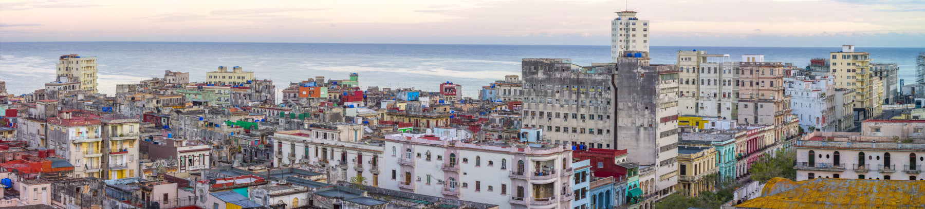 This dynamic wallpaper features a striking aerial view of Havana's captivating skyline. A mesmerizing blend of architectural styles and vivid colors creates a breathtaking spectacle. The city's buildings stretch towards the tranquil blue ocean, offering a stunning contrast between the urban landscape and the calming expanse of water. The warm, slightly faded hues of the setting sun add a touch of nostalgia and invite a sense of peaceful contemplation. The wallpaper is perfect for adding a burst of color and cultural richness to any interior space, bringing a vibrant piece of Havana into your home.