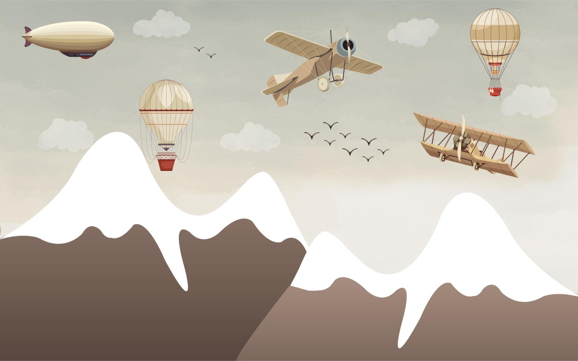 Discover the charm of yesteryear's adventure through our vintage flight wall mural, featuring a kids mountain wallpaper theme. This playful mural captivates the hearts of little ones, encouraging dreams of soaring heights and distant peaks. Gentle hues and whimsical aircraft engage young minds, fostering a room of exploration and learning. This piece serves as a delightful backdrop for stories told and games played, a daily flight of fantasy for the imaginative spirit. Crafted to spark curiosity, it's a timeless addition to a child's room, nurturing their love for discovery in every glance.
