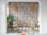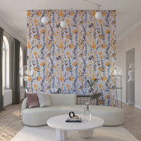 Immerse yourself in the serene beauty of "Warm Meadow Harmony", a wallpaper that captures the essence of a sun-kissed field in a delicate dance of color and form. Soft, watercolor-inspired blooms in hues of warm amber and calming indigo create a visually captivating contrast against a subtle, light background. The arrangement is both natural and elegant, evoking a sense of peaceful tranquility. Each stroke mimics the gentle sway of meadow grasses and the subtle textures of wildflowers under a warm summer sky.