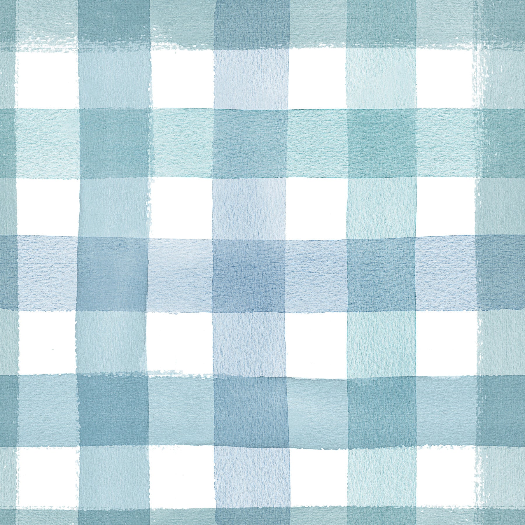 Watercolor blue gingham design perfect for kitchens and cottage spaces.