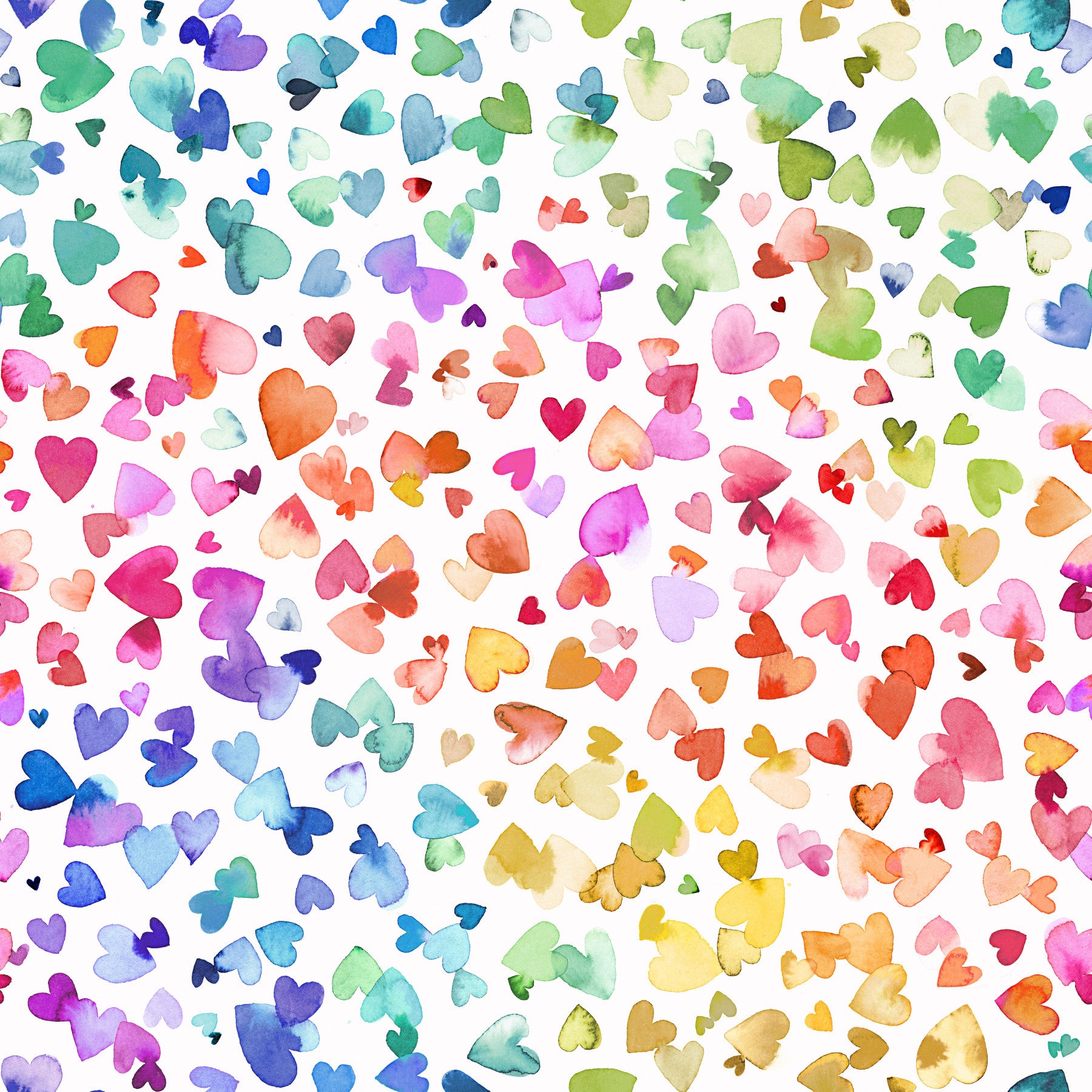 Transform your space with this charming heart-themed wallpaper for walls. A cascade of watercolor hearts in a rainbow of colors brings a playful yet artistic touch to any room. The ombre effect blends blues and greens into reds, oranges, yellows, and pinks, creating a cheerful and uplifting atmosphere. This design introduces character to kids' rooms, nurseries, or adds a whimsical accent to living rooms, bedrooms, and hallways. The hand-painted feel and subtle textures enhance interior design. Install it to give your space a unique, loving, sophisticated finish.