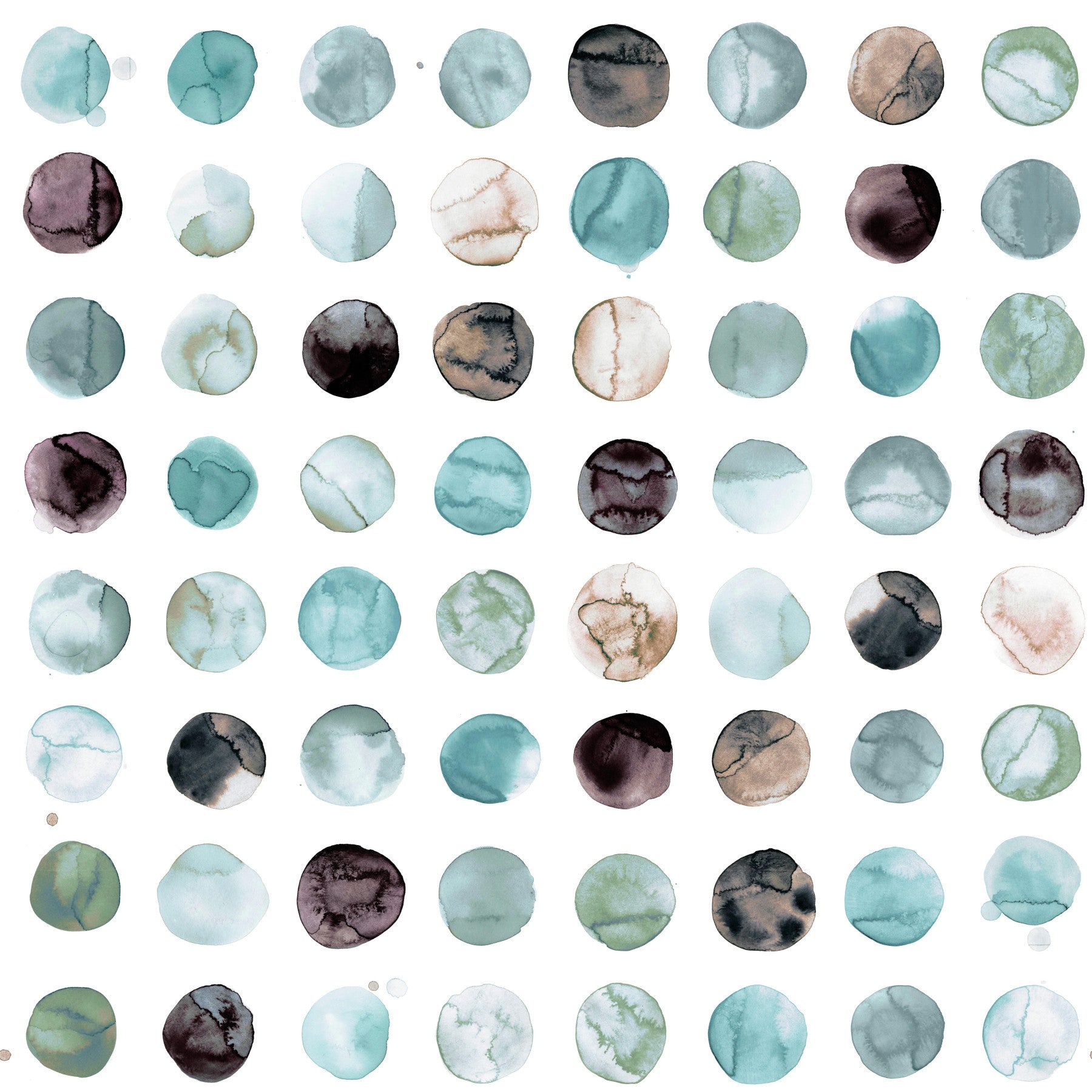 Embrace serene Scandinavian style with this minimalist wallpaper. A grid of delicately rendered watercolor dots in calming aqua blues, subtle greys, and muted browns creates a visually soothing and balanced design. The imperfect, hand-painted quality of each circle adds a touch of organic texture, while the overall arrangement maintains a clean and modern aesthetic. Perfect for a calming workspace or a tranquil living space, this wallpaper brings a touch of understated elegance to any digital device.