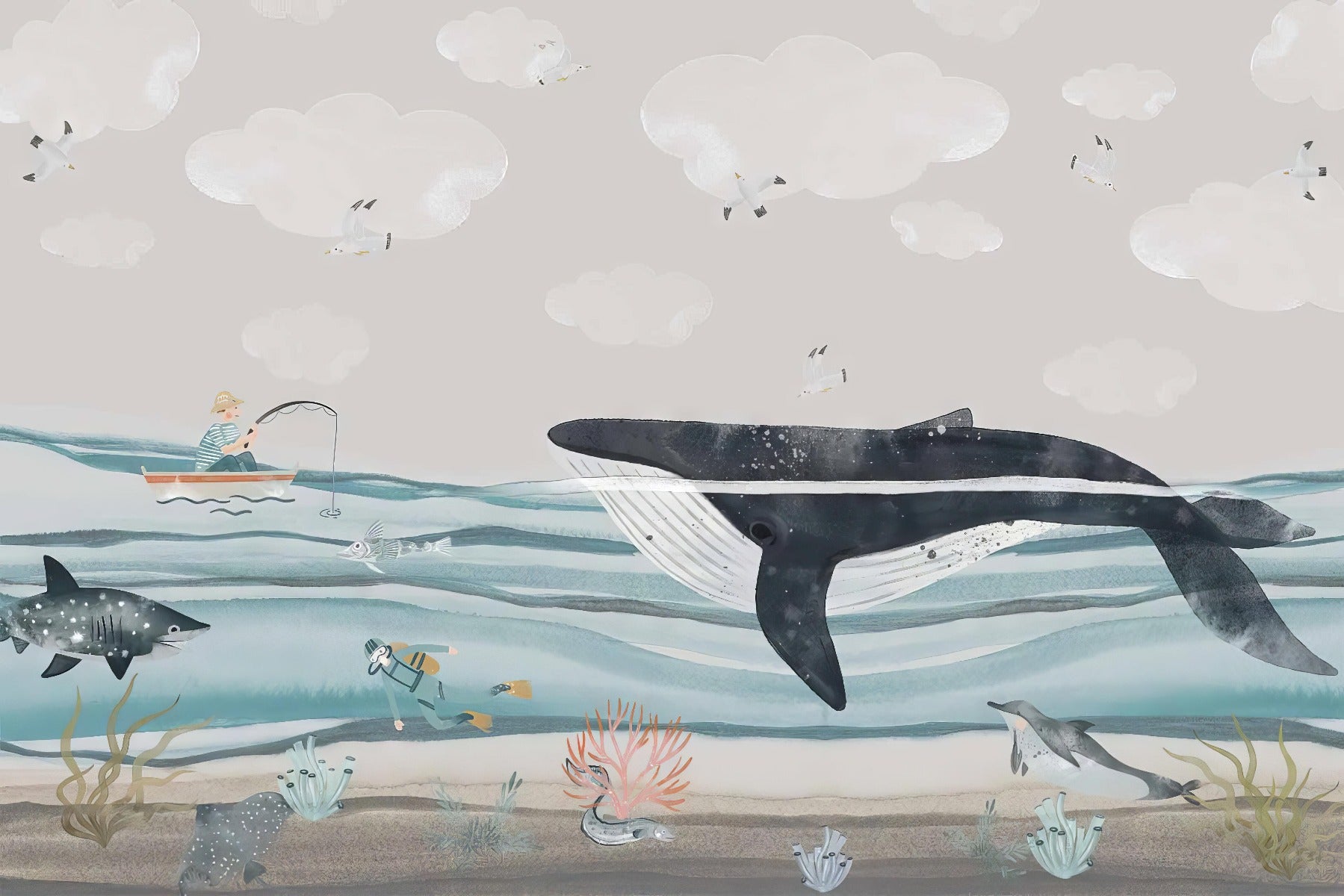 Bring the calmness of the ocean into your home with our whale shark mural, perfect for ocean lovers looking for a little bit of an escape.