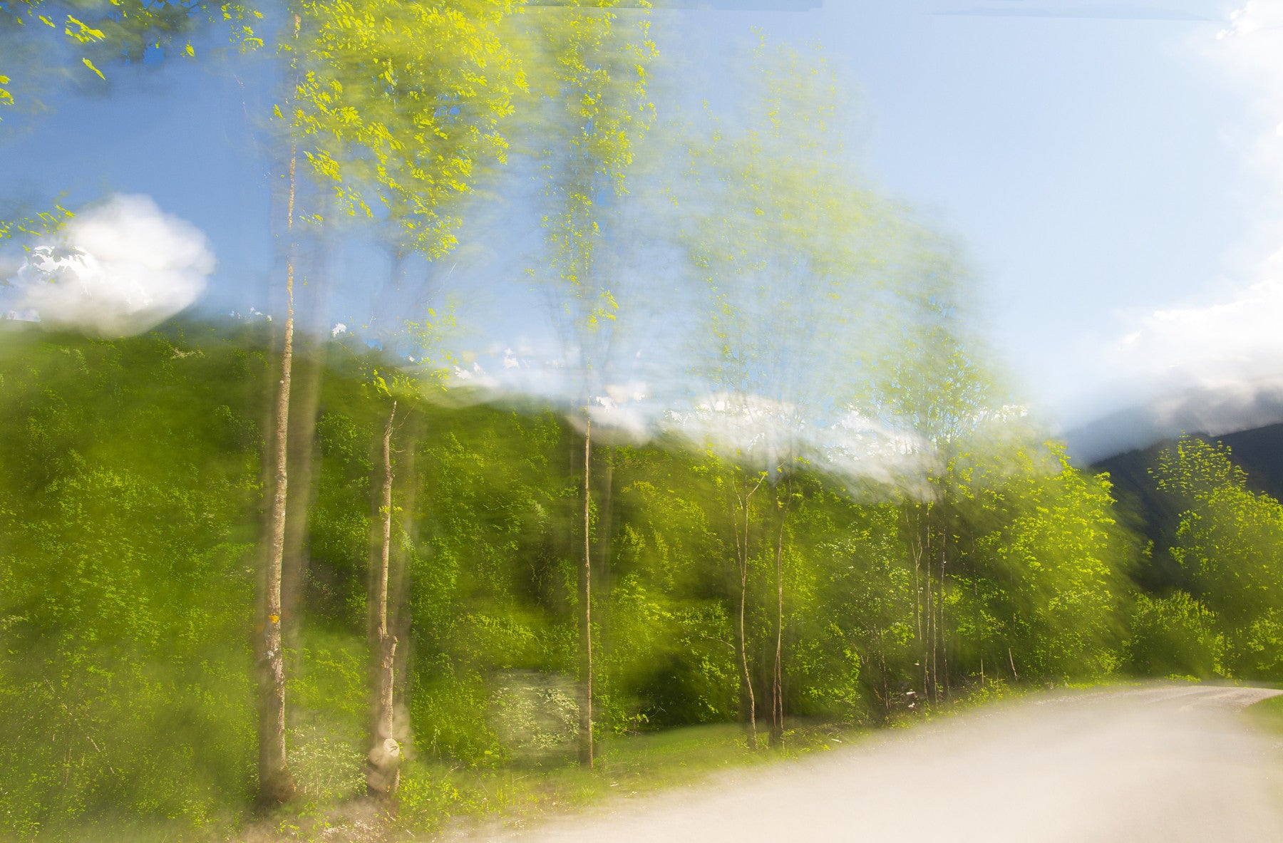 This striking piece presents a serene view of nature, where vibrant greens and a clear blue sky converge. The blurred effect conveys a sense of movement, inviting the viewer to reflect on the beauty of the outdoors. Perfect for adding a touch of tranquility to your living space or office, this piece embodies the essence of a peaceful retreat. Enhance your decor with this unique portrayal of nature's charm.
