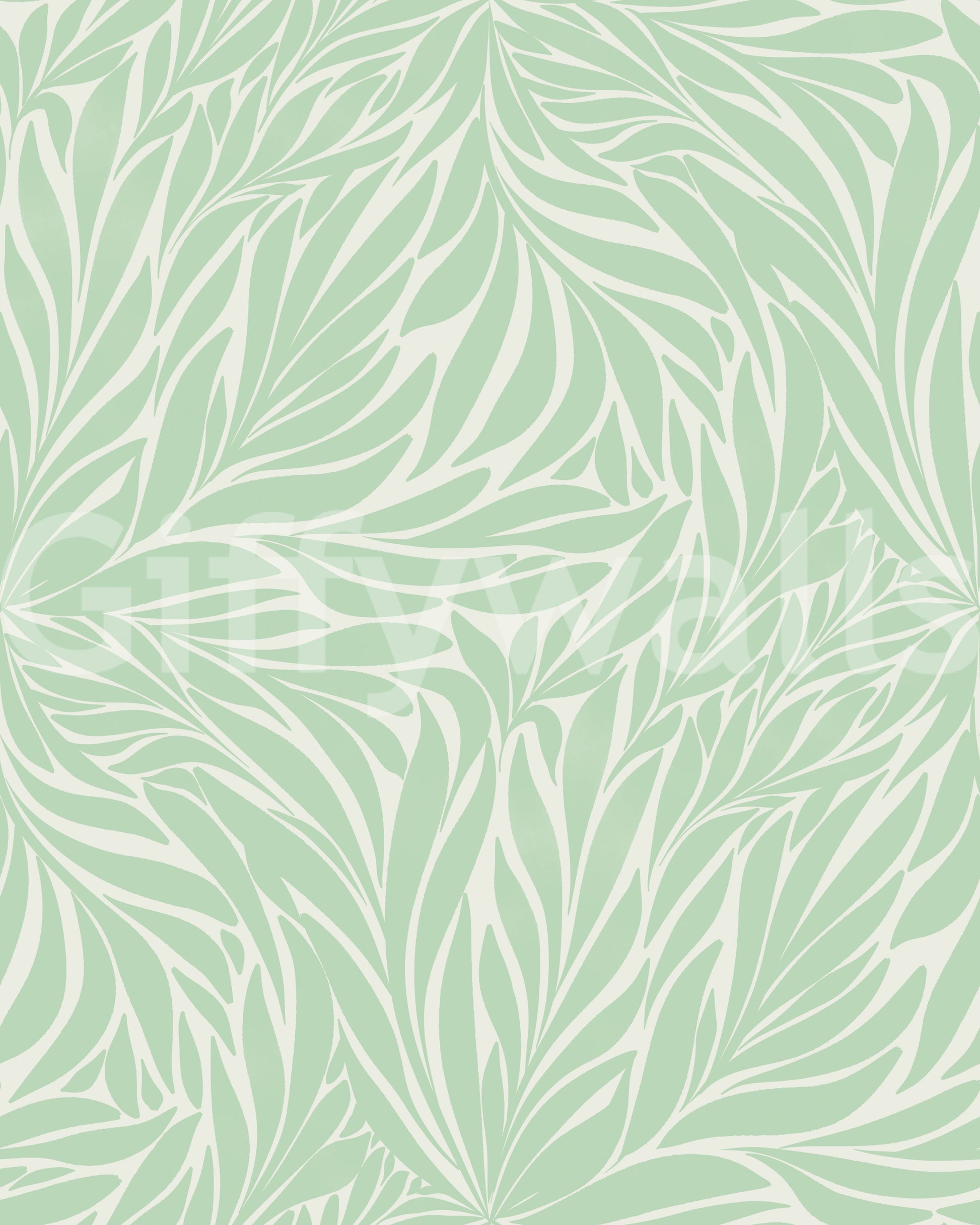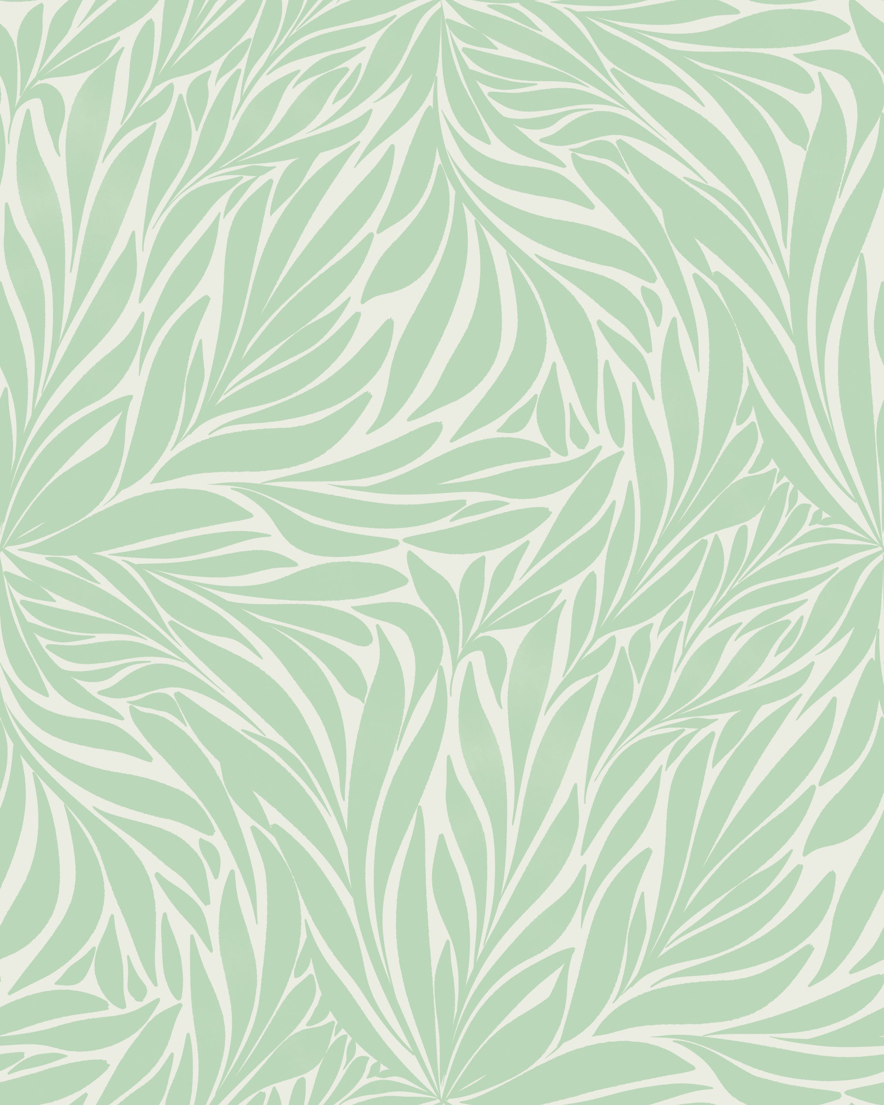 Transform your space with 'Whispering Leaves,' a wallpaper that captures the delicate beauty of nature. The design features a mesmerizing pattern of stylized leaves in soft, muted sage green hues, creating a soothing and ethereal atmosphere. The seamless pattern flows gracefully across any surface, inviting the eye to wander through its intricate details. Its subtle texture and calming color palette make it the perfect choice for creating a tranquil sanctuary in your home. 'Whispering Leaves' is a versatile wallpaper suitable for bedrooms, living rooms, or hallways, adding a touch of understated elegance and natural charm to any room.