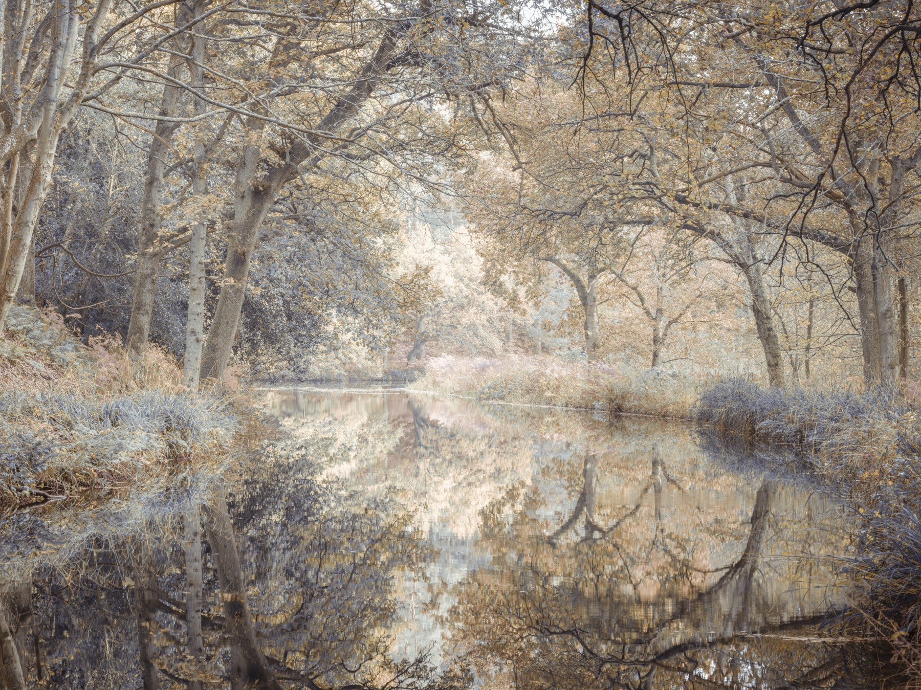 The Whispering Waters wallpaper for walls offers a moment of reflection and calm. This design features a unique interplay of a still river against a soft, serene forest, providing a thoughtful backdrop for any space. It’s an artful way to update your home. Whether you're decorating a large room or a small nook, this wallpaper mural brings a quiet, pensive style. The peel and stick wallpaper makes installation easy and lets you create your own personal retreat with a touch of modern sophistication.
