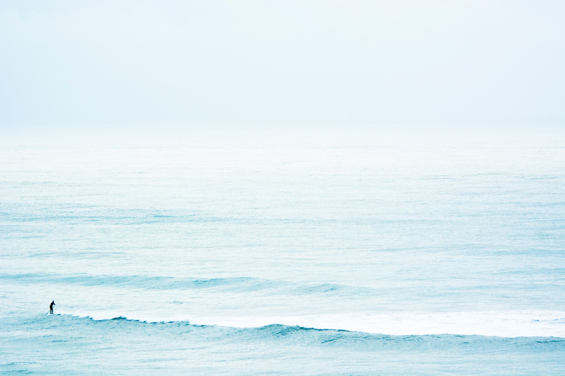 Embrace the serene chill of Winter Surfing III a minimalist wallpaper that captures the solitary beauty of winter's embrace on the open ocean. This image features a vast expanse of tranquil, icy blue water gently rolling into subtle waves, topped with white foam, creating a peaceful visual rhythm. A lone surfer, a small silhouette against the immense backdrop, paddles out, embodying the spirit of adventure and the pursuit of passion against the odds. The cool color palette evokes a sense of calmness and solitude, making it an ideal choice for creating a serene and focused environment on your screen. This wallpaper is perfect for those who appreciate the minimalist aesthetic and the captivating power of nature's raw beauty. Let 'Winter Surfing III' transport you to a place of quiet contemplation and inspire your inner adventurer.