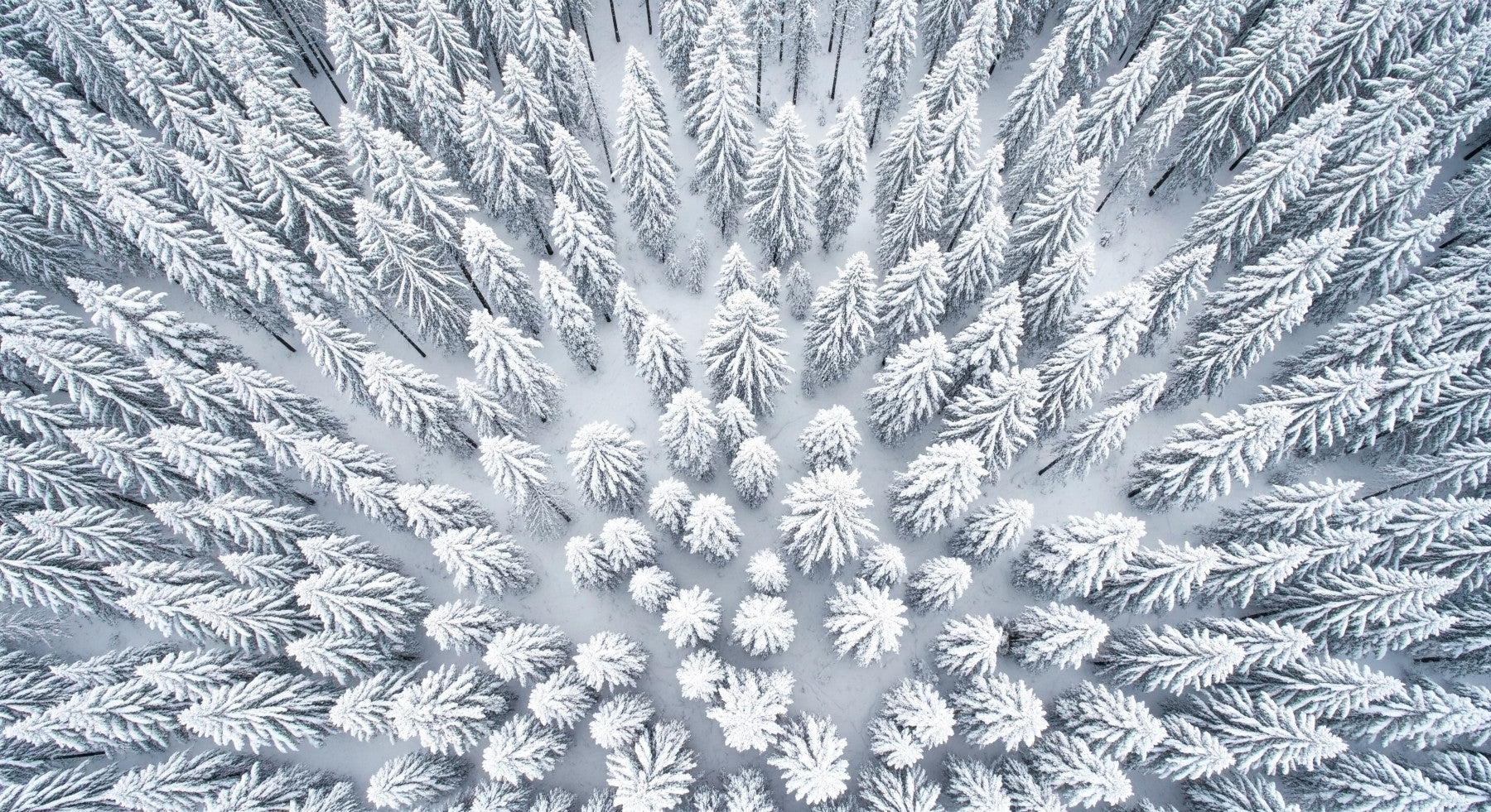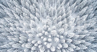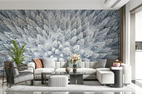 Transform your home into a serene winter wonderland with this captivating wallpaper for walls. The design showcases a dense forest blanketed in fresh snow, captured from an aerial perspective. The pattern creates a calming effect, ideal for bedrooms and living areas. The monochrome palette of white and gray offers a peaceful, sophisticated touch. Introduce a sense of tranquility and fresh air into your interior space. It works wonders in any room that needs quiet elegance.
