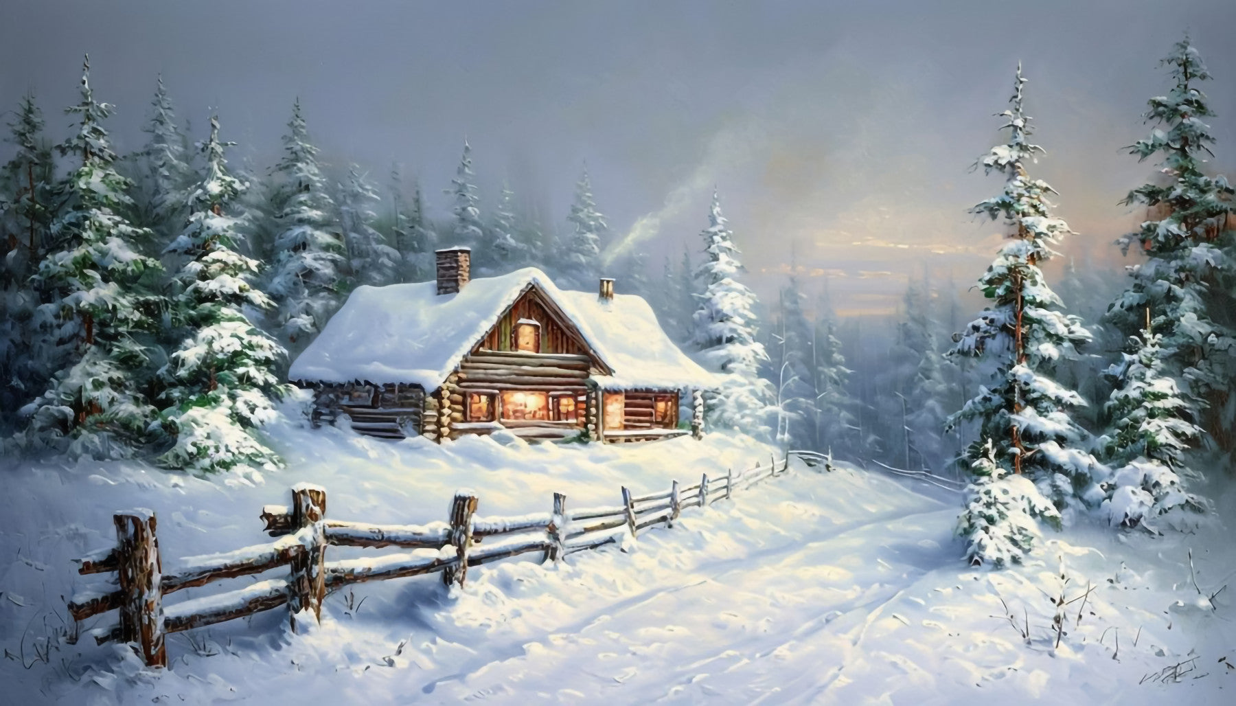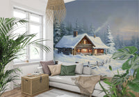 Bring the beauty of winter indoors with this serene wallpaper. A snug log cabin surrounded by snow-kissed trees welcomes you with its warm, inviting light. Gentle blues and whites dominate, offering a calm backdrop to the golden hues glowing from within. This wallpaper for walls adds a cozy touch to any living space, perfect for creating a peaceful reading nook or a calming bedroom environment. Imagine the warmth and serenity this scene brings to your home, evoking a sense of comfort and relaxation.