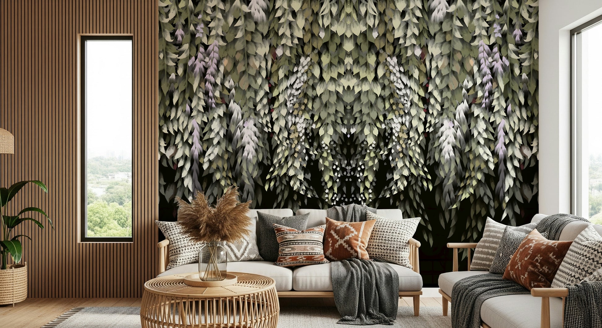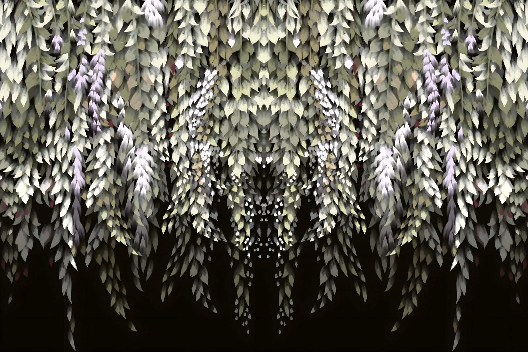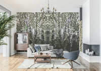 Immerse yourself in the ethereal beauty of Wisteria Cascade, a captivating wallpaper that captures the essence of a cascading wisteria vine. This stunning design features an abundance of delicate, stylized leaves and blooms in soft, muted tones. The artwork creates a sense of tranquility and natural elegance, evoking the feeling of standing beneath a flowering arbor. With its subtle color palette and detailed textures, Wisteria Cascade adds a touch of refined charm to any space. The dark background of the image enhances the bright color of the wisterias, bringing a focus on the cascading vines. This wallpaper is perfect for creating a serene and sophisticated ambiance, turning your walls into a botanical masterpiece.