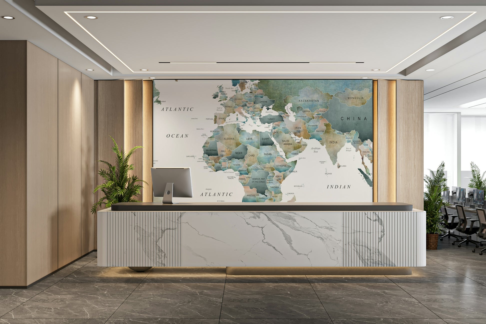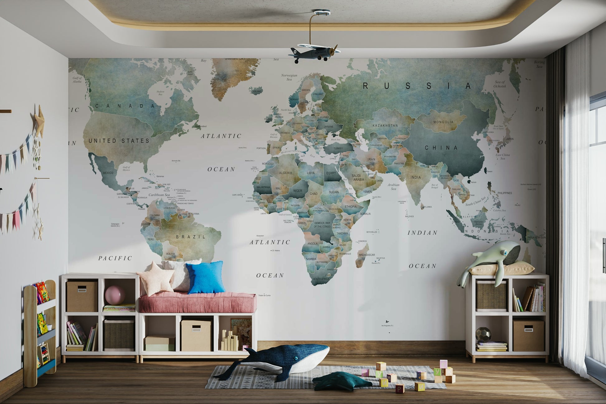 World Map Muted Tones