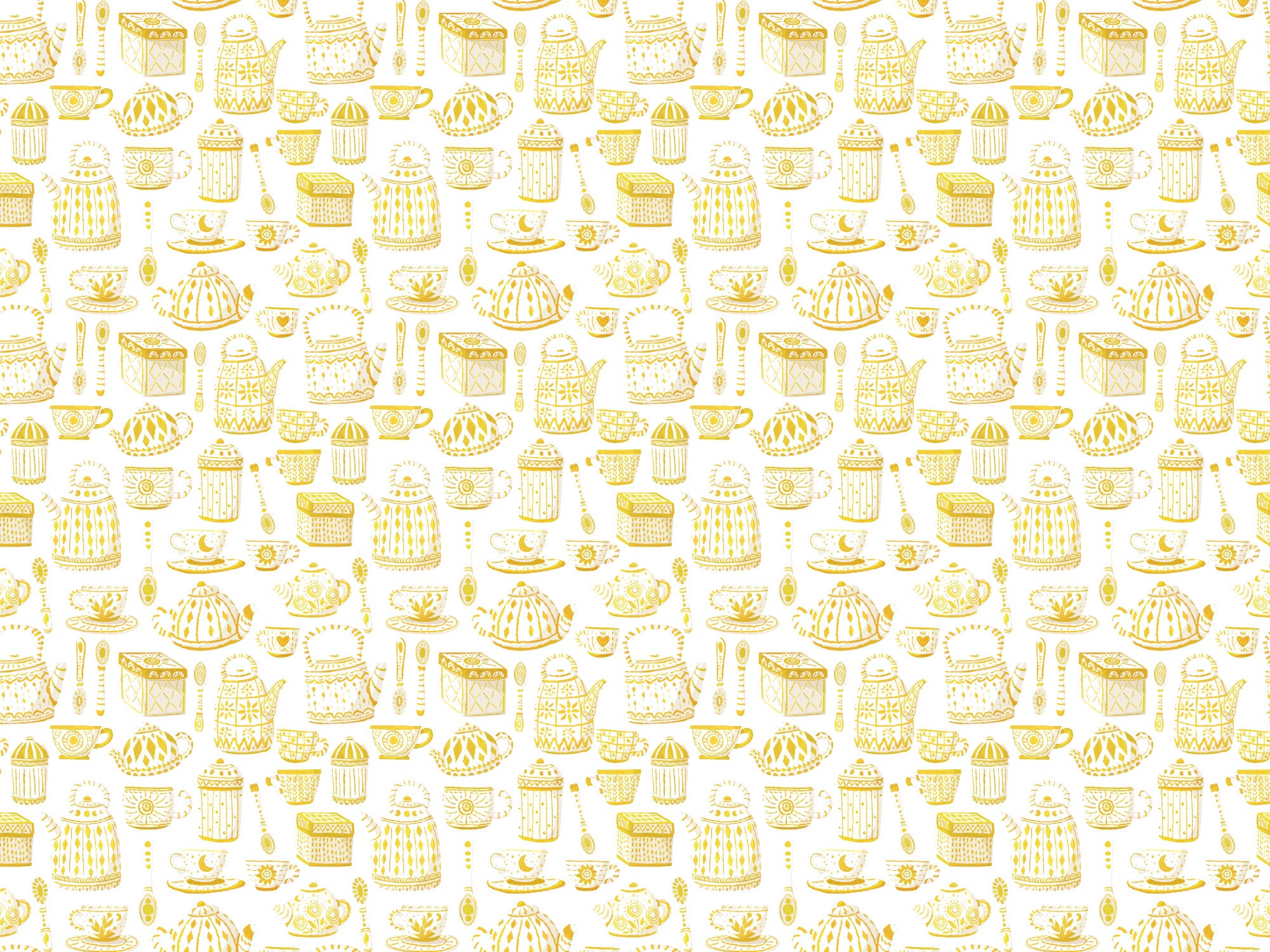 Yellow tea set wallpaper perfect for a vintage-inspired room.