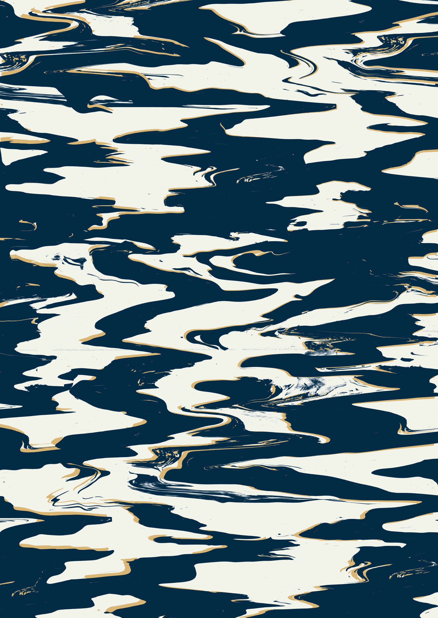 Immerse yourself in the captivating flow of Aquafluid a mesmerizing wallpaper that evokes the serene and powerful essence of water in motion. This abstract design features sweeping currents of deep navy blue contrasted against expanses of creamy white, creating a dynamic interplay of light and shadow. Subtle gold accents trace the edges of these fluid forms, adding a touch of luxurious refinement. The swirling patterns and organic shapes lend a sense of depth and movement, mimicking the ever-changing nature of water. 'Aquafluid' brings a touch of tranquility and sophistication to any digital space, offering a visual escape into a world of flowing energy and calming aesthetics. Perfect for those seeking a modern and elegant backdrop with a hint of natural inspiration.