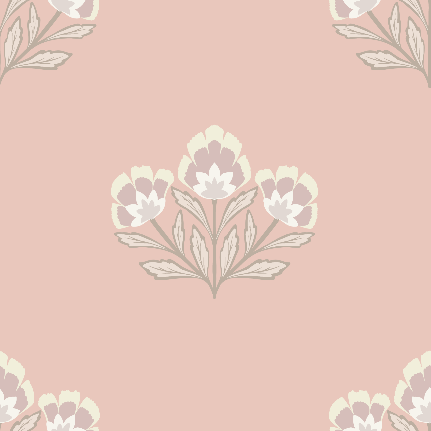 Blush Blooms wallpaper, charming pink background, elegant floral motif illustration.