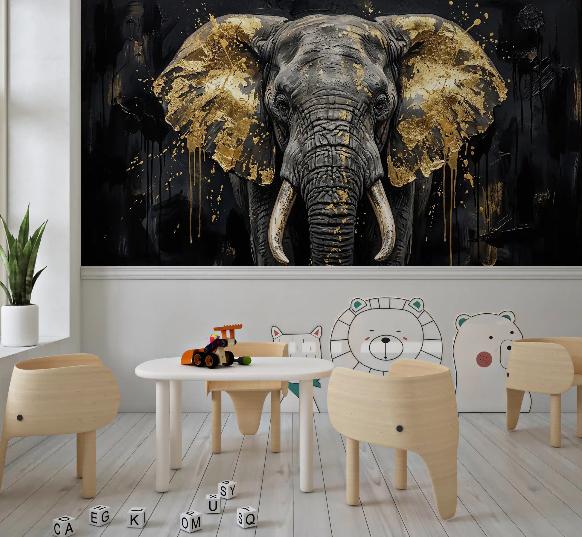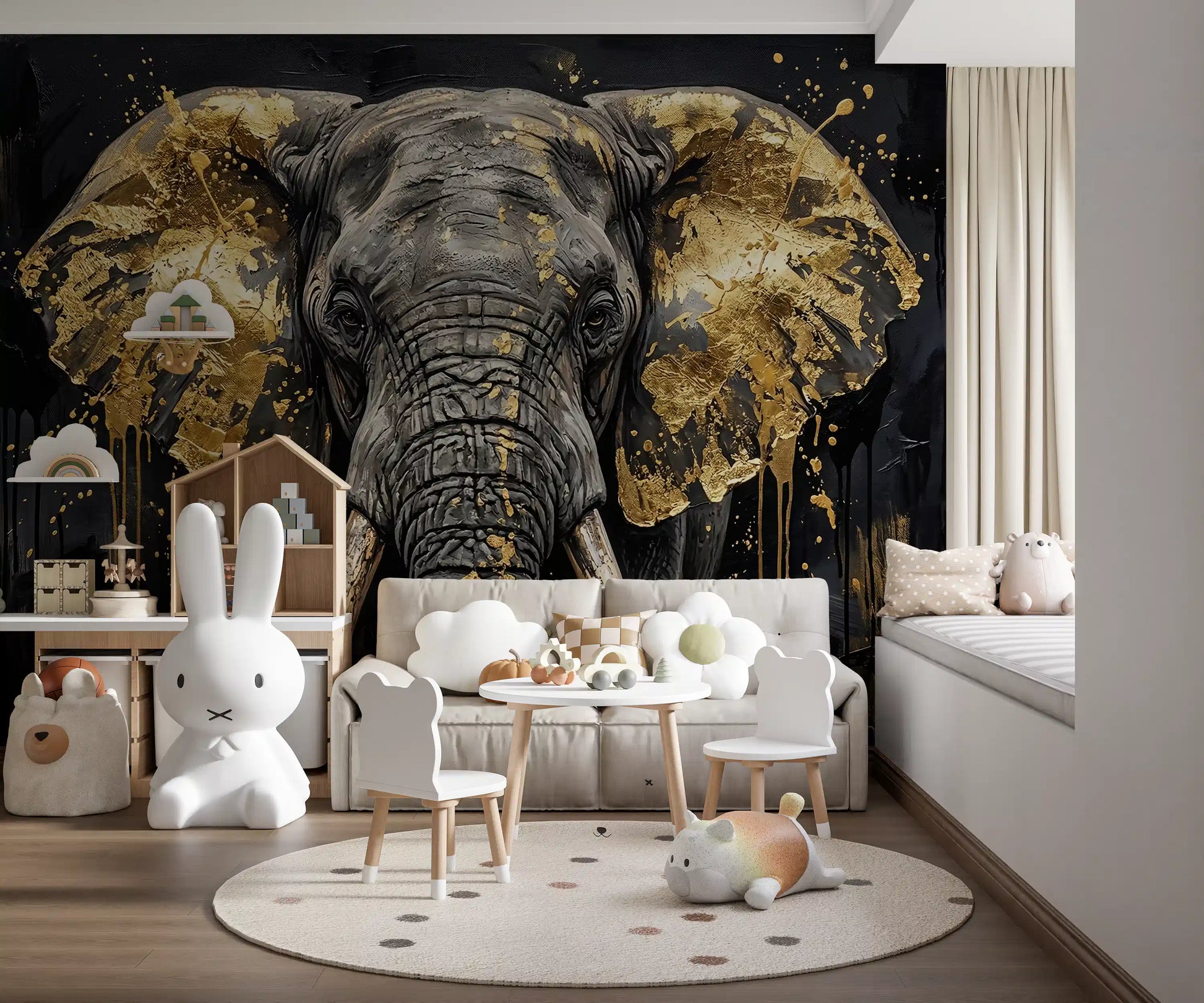 Mural de pared "Grandeza del elefante dorado"