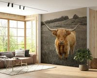 Vaca de las Tierras Altas. Evoca la serena majestuosidad de las Tierras Altas de Escocia con esta cautivadora obra de arte. "Guardianes de las Tierras Altas" presenta un impactante retrato de una vaca de las Tierras Altas, un noble centinela que vela por sus tierras ancestrales. La paleta de tonos marrones y grises apagados crea una atmósfera atemporal, casi sepia, que acentúa la belleza agreste del paisaje. El cálido pelaje de la vaca ofrece un sutil contraste, atrayendo la mirada hacia su imponente presencia y la impresionante envergadura de sus cuernos. Un fondo de colinas ondulantes y árboles lejanos añade profundidad, evocando una sensación de tranquila soledad y naturaleza salvaje. Esta pieza lleva el espíritu perdurable y la serena fuerza de las Tierras Altas a tu hogar, una pieza que encarna la resiliencia y la belleza.
