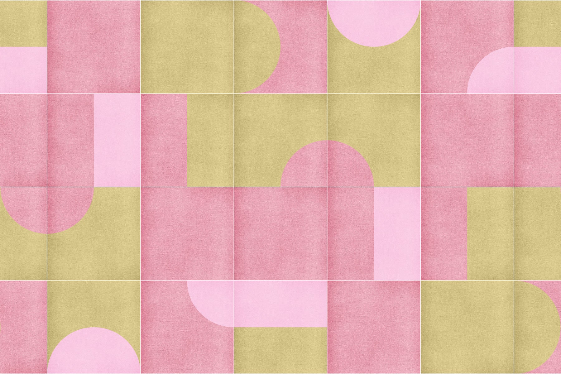 Step back in time with Retro Tiles 15 a captivating wallpaper design that embodies the essence of mid-century modern aesthetics. This pattern features a delightful interplay of geometric shapes, primarily squares and semi-circles, rendered in a sophisticated palette of muted pinks and subtle gold. The textured finish adds depth and a tactile quality, reminiscent of vintage fabrics and handcrafted tiles. The design's ordered yet playful arrangement evokes a sense of nostalgia and comforting familiarity. "Retro Tiles 15" is perfect for adding a touch of vintage charm and understated elegance to any space, creating a serene and inviting ambiance. Let this wallpaper be a stylish and comforting reminder of simpler times.