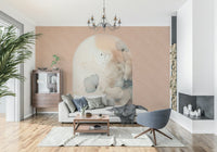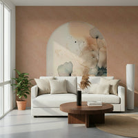 Elevate your interior with the 'Delicate Bloom Frame' wallpaper. The soft, watercolor florals in muted hues, framed by a gentle arch, evoke a sense of peace. Against a terracotta wave backdrop, the floral arrangement provides a sophisticated touch. This wallpaper for walls lends charm to any room. It works perfectly in bedrooms, adding a tranquil ambiance, or living rooms, creating a welcoming space. Its subtle design beautifully complements both modern and classic interiors, adding depth without overwhelming the room.