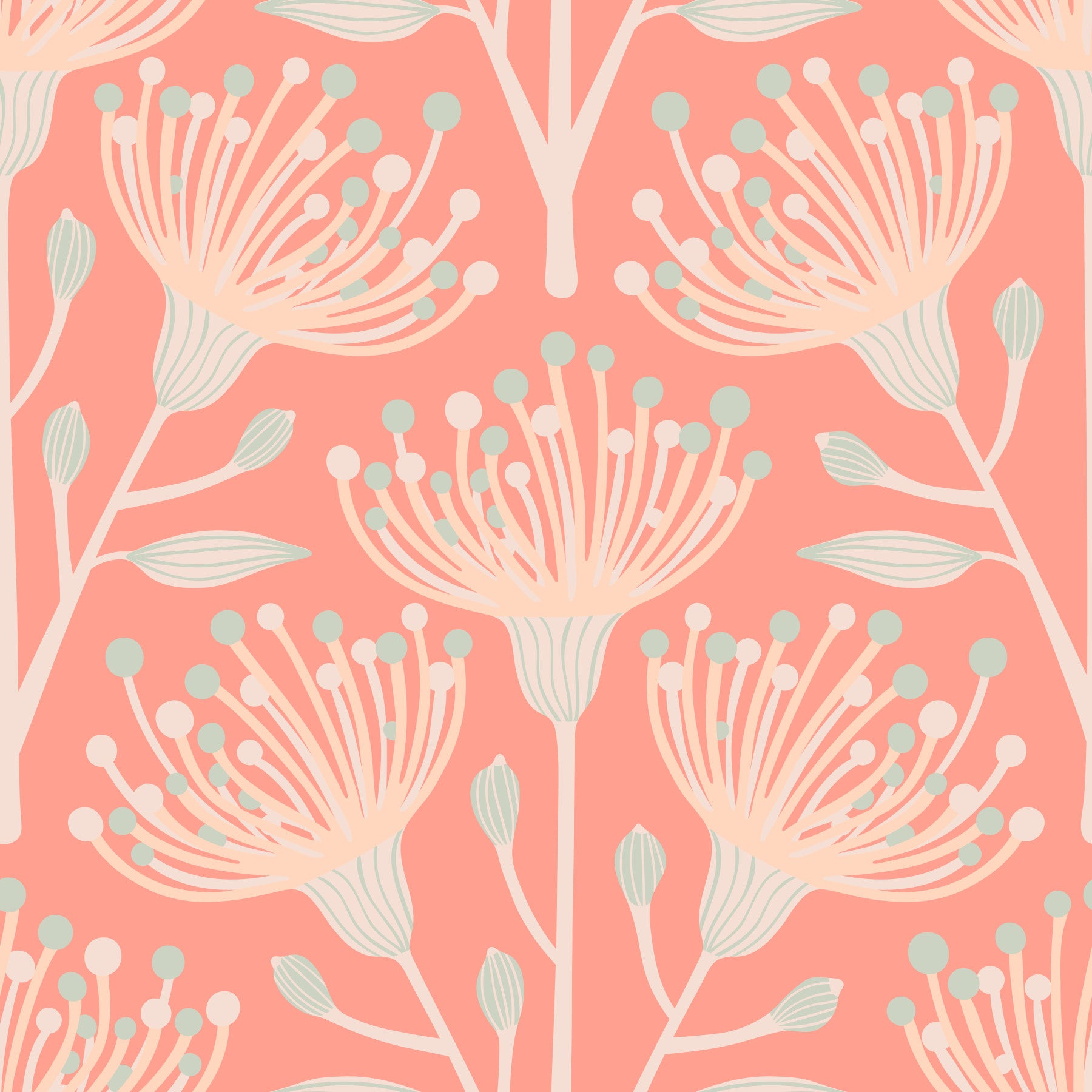 Eucalyptus Floral Botanical Cottage Blush on Apricot Orange Wallpaper.