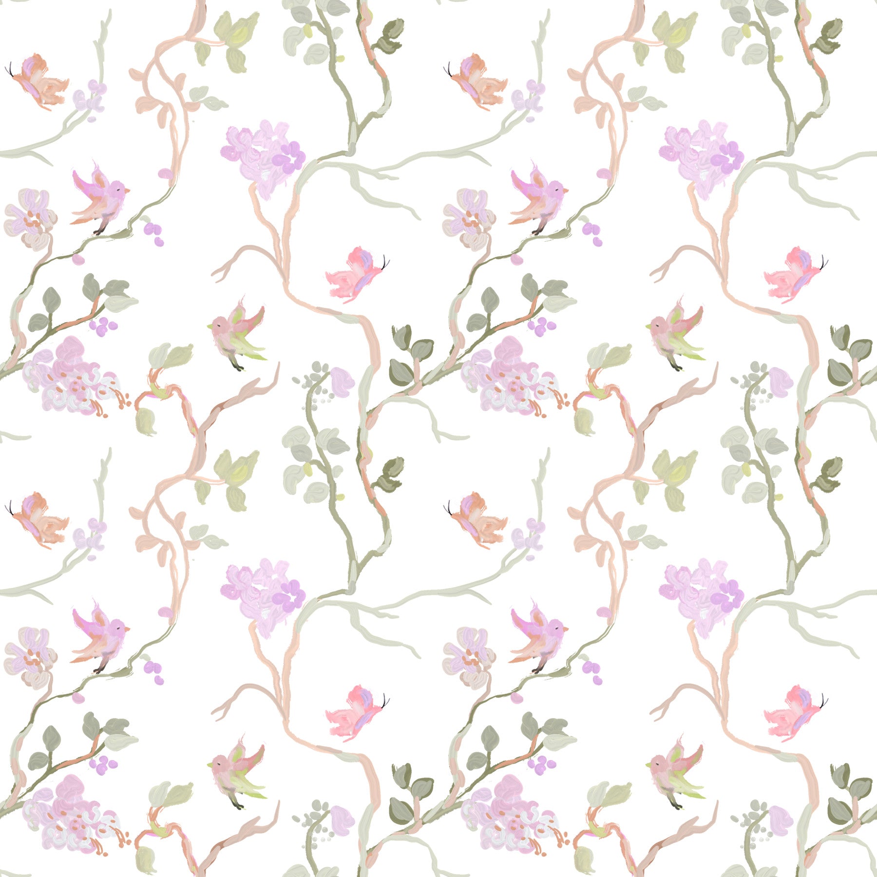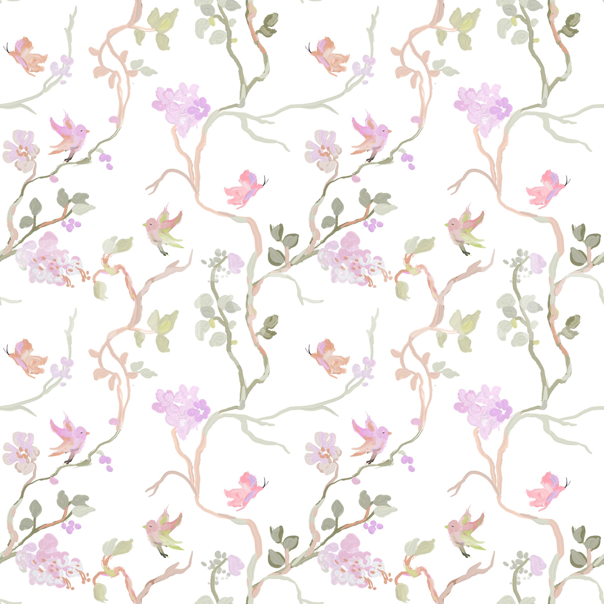 Kutsu luonnon herkkä kauneus tilaasi tällä viehättävällä seinätapetilla. Tässä kuosissa on oikukkaita lintuja ja perhosia lepattamassa maalauksellisten kukkaistutusten oksien keskellä. pastellineja chinoiserie-sävyjä, pehmeän romanttinen estetiikka, sekava maalauksellinen eleganssi, punastuvan pinkki paletti, puuterimaiset pinkit sävyt, ilmava sommittelu, herkät siveltimenvedot, oikukkaat kukka-asetelmat, lepattavat perhoset, sirot linnut, vintage-itämainen viehätys, haalistunut antiikkitunnelma, shabby chic -vaikutteet, eteerinen tunnelma, hillityt pastellit, pölyisen ruusun sävyt, lempeä liike, löysä kuvitustyyli, naisellinen pehmeys, koristeelliset yksityiskohdat, runollinen puutarhamaisema, unenomainen tekstuuri, kevyt ja ilmava tunnelma, käsinmaalattu ilme, hienovarainen ahdistava tunnelma, maalaisromanttinen, elegantti epäsymmetria, kasvitieteellinen runsaus, pehmeät kerrostetut terälehdet, leijuvat terälehdet