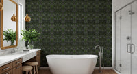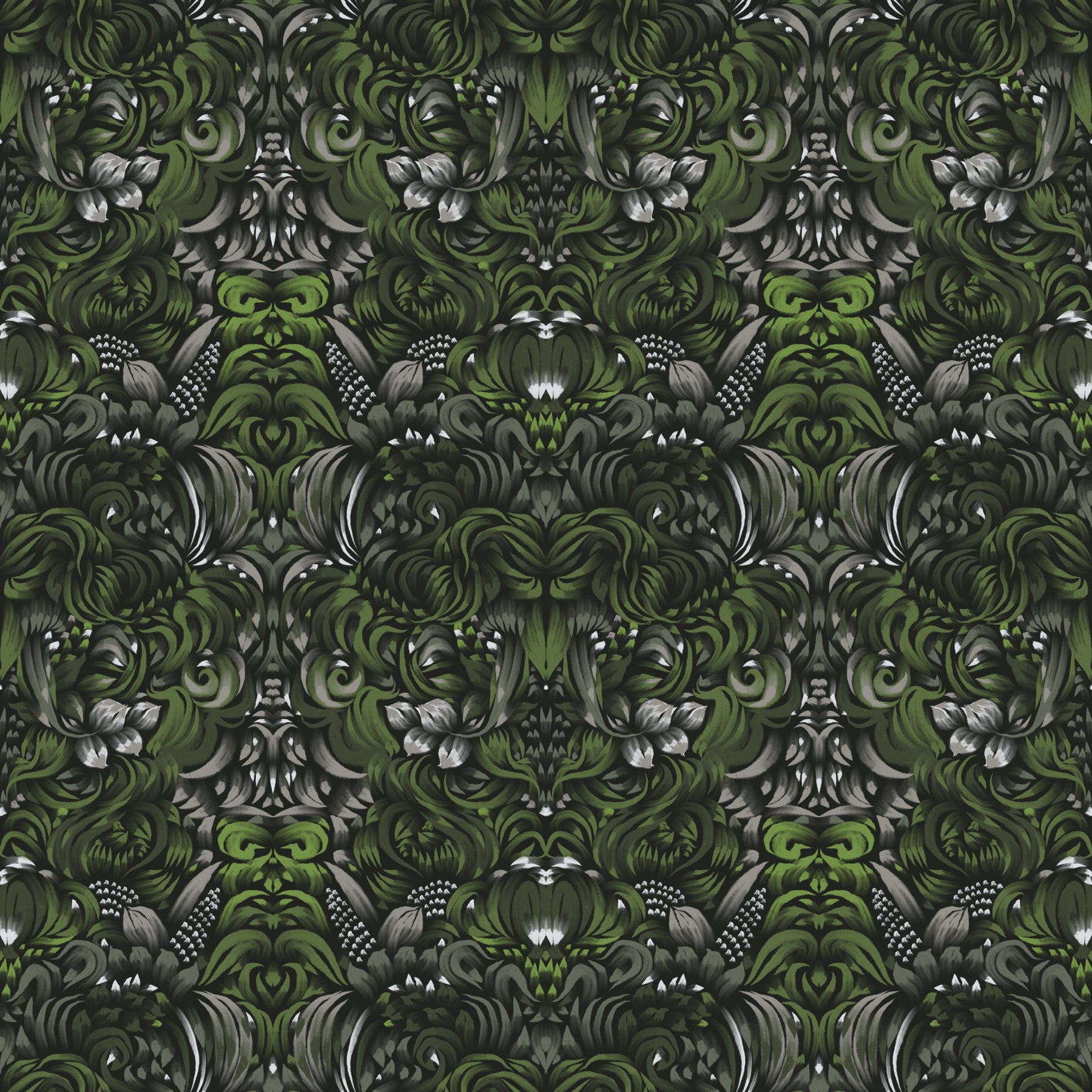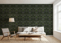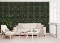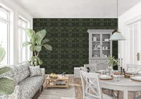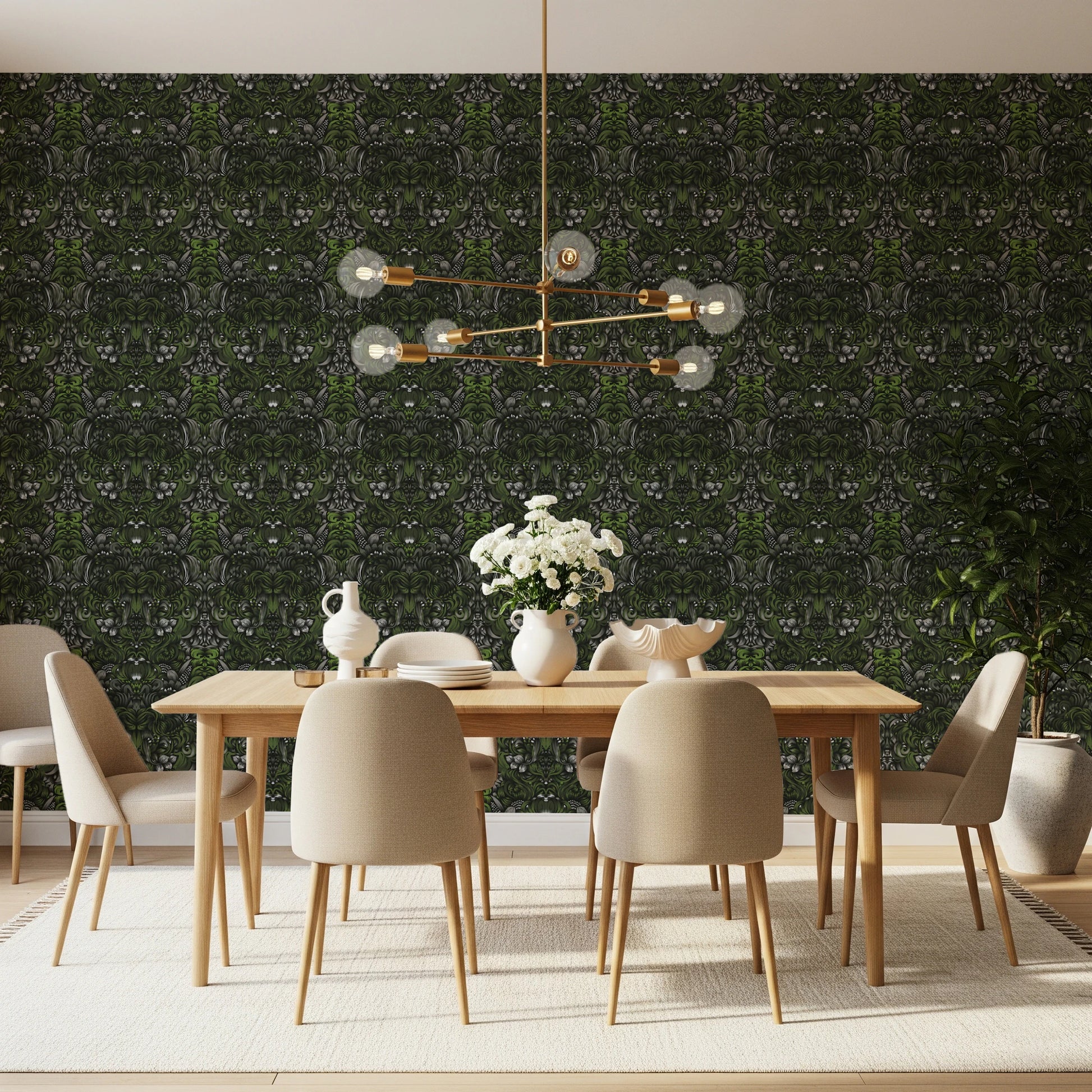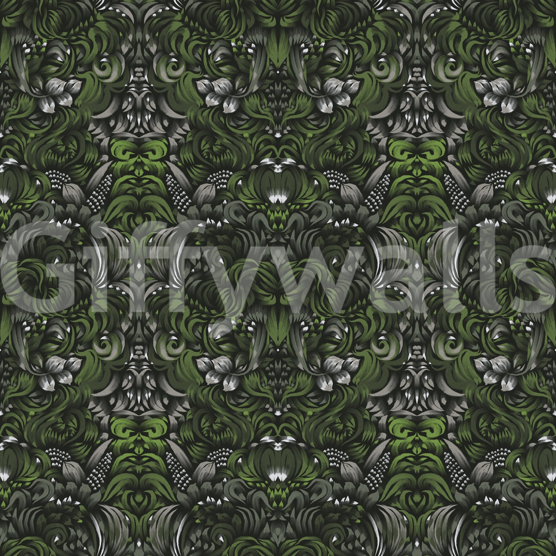 Vehreä damaskikuvioinen viidakkoseinävaate, vihreä metsätapetti