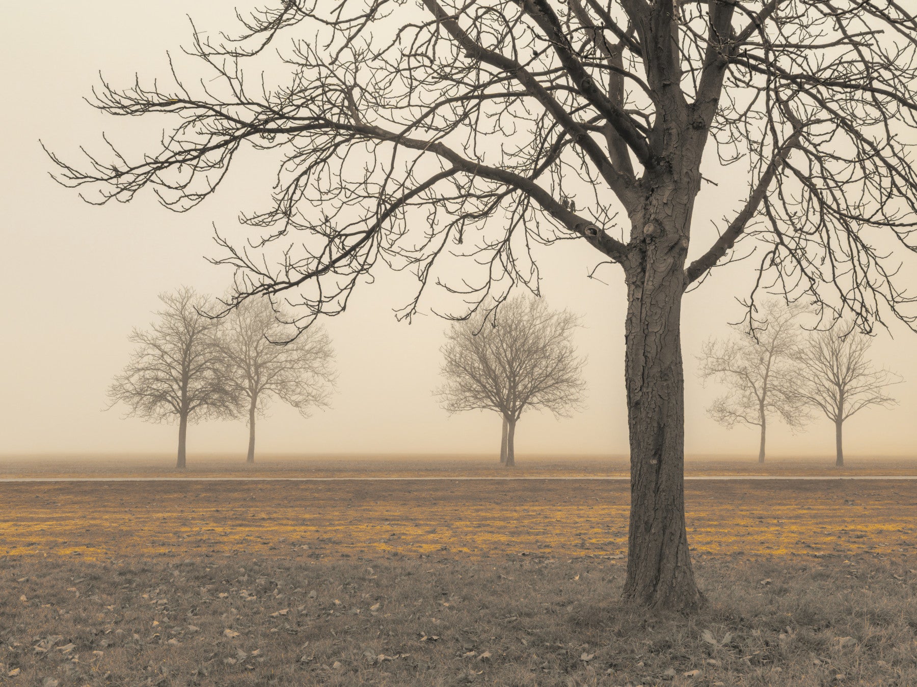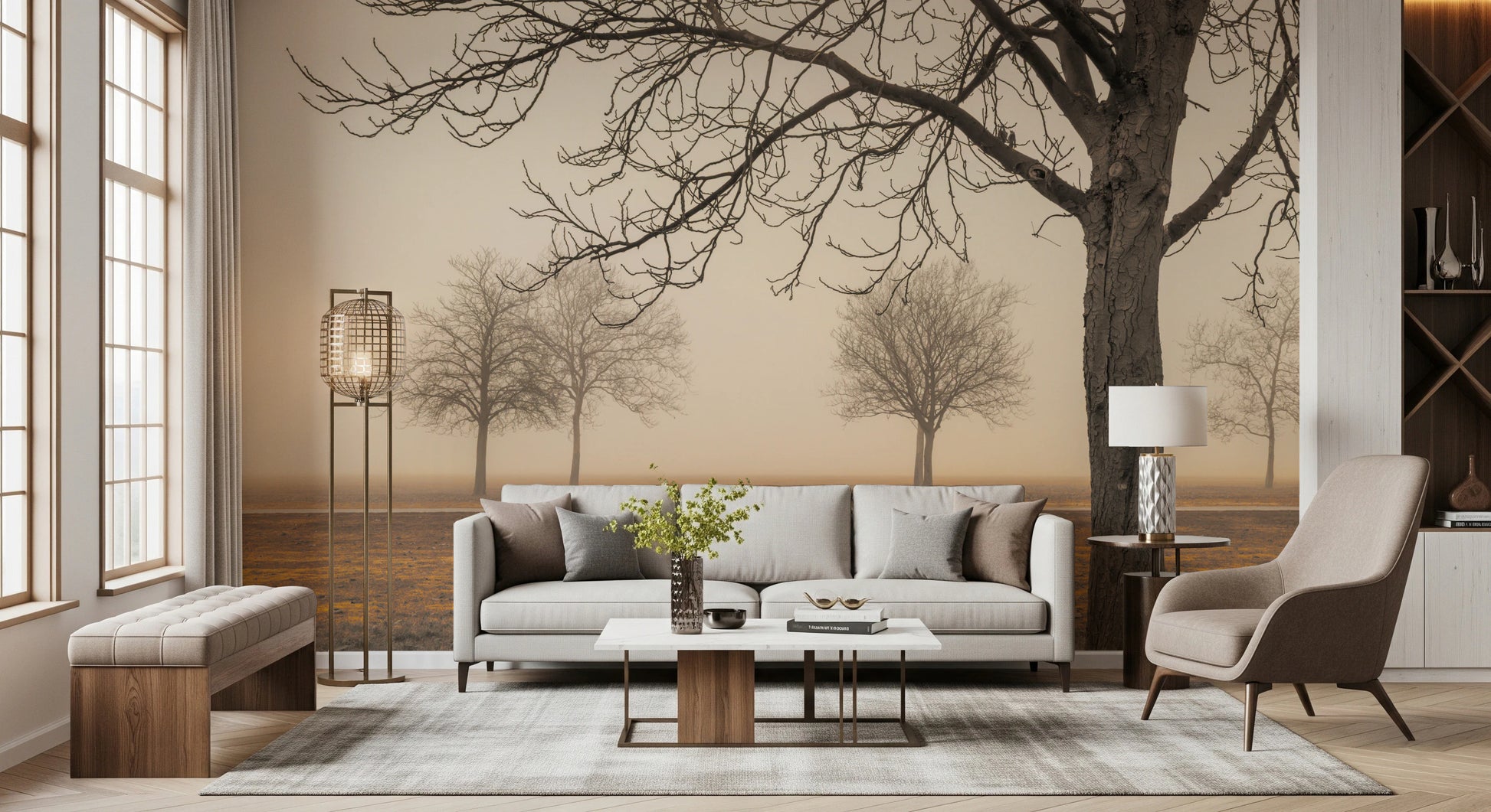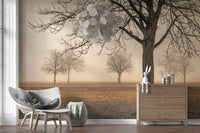Arbres par temps brumeux. Transformez votre espace grâce à la beauté sereine de « Campagne brumeuse ». Cette œuvre atmosphérique capture un paysage paisible enveloppé d'une douce brume, évoquant une sensation de solitude apaisante. Des arbres dénudés se découpent en silhouette sur un fond doux et éthéré, leurs branches élancées s'élançant vers le ciel. La lumière douce et diffuse crée une ambiance apaisante et contemplative, idéale pour ajouter une touche d'élégance naturelle à n'importe quelle pièce. Les tons chauds et terreux du sol contrastent subtilement avec la fraîcheur de la brume, créant profondeur et intérêt visuel. Cette œuvre d'art est idéale pour créer une atmosphère reposante et accueillante, transformant vos murs en une fenêtre ouverte sur une paisible escapade champêtre. Sa composition minimaliste et sa palette de couleurs douces en font un choix polyvalent qui s'harmonise avec une grande variété de styles d'intérieur, du moderne au rustique.