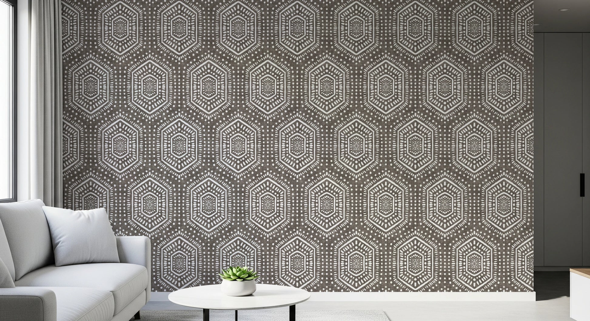 Laissez-vous envoûter par l'esprit bohème avec notre revêtement mural « Boho Painted Grunge Dark Bark ». Ce motif géométrique captivant évoque les peintures tribales réalisées à la main. Les motifs blancs contrastent avec le fond « écorce sombre », créant une texture visuelle saisissante. Son effet légèrement vieilli lui confère une beauté brute et organique, idéale pour apporter une touche d'éclectisme et d'authenticité à votre intérieur. Créez une ambiance chaleureuse et une profondeur visuelle dans votre maison grâce à ce design distinctif, transformant n'importe quel mur en une pièce maîtresse qui reflète votre style unique et votre esprit d'aventure.