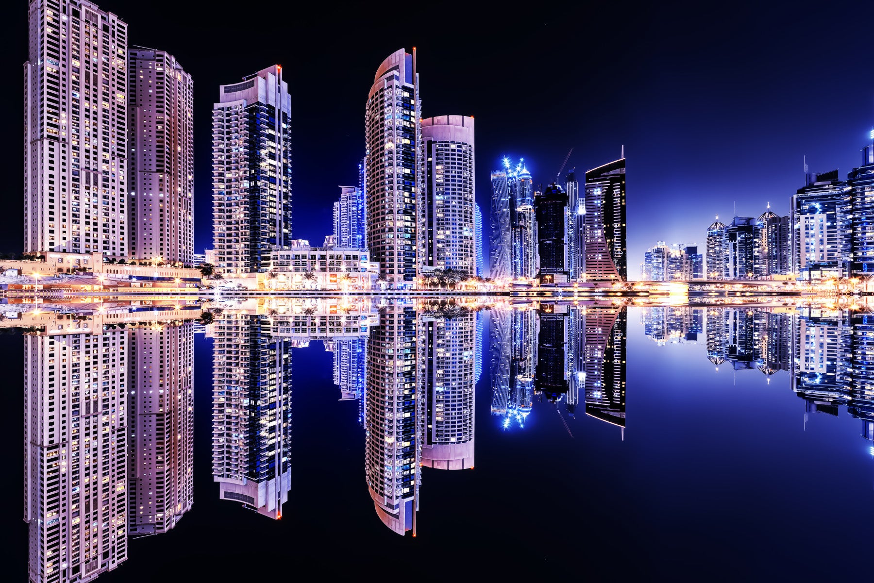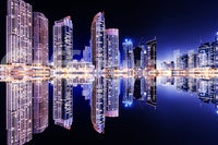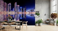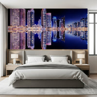 Transformez votre espace avec ce superbe papier peint représentant un paysage urbain. Admirez les gratte-ciel illuminés se détachant sur un ciel nocturne, leurs lumières dansant sur un reflet paisible. Ce motif évoque une grandeur moderne et une sophistication urbaine. Les bleus froids et les reflets chauds créent un contraste captivant, idéal pour un salon, une salle à manger ou un bureau. Ses lignes épurées et ses détails vibrants affirment un style, ajoutant profondeur et une touche cosmopolite. Ce papier peint métamorphose vos murs en un spectacle envoûtant, sublimant votre espace d'une magie citadine.